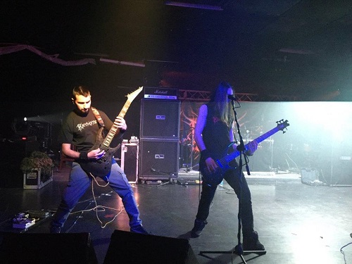 Spetta al quintetto emiliano dei KRYSANTEMIA dare fuoco alle polveri di questa serata, che già dalle premesse si prefigura molto interessante. Freschi di secondo disco, “Finis Dierum” stampato via Memorial Records, il gruppo italiano si presenta ben determinato a non sfigurare, nonostante le oggettive difficoltà nel trovarsi al di fuori del contesto stilistico della serata (black – black/death metal), che fondamentalmente è il trait d’union delle altre bands presenti alla serata. Nella mezz’ora di tempo loro concessa i Krysantemia mettono in evidenza la loro miscela di death/thrash che appare piuttosto scolastica compositivamente parlando e, nonostante l’impegno profuso sul palco dai nostri, le varie “Incarnation” e “Six Feet Away” scorrono nel complesso senza lasciare il segno, nonostante l’act emiliano possa avvalersi di suoni discreti seppur ad un volume non altissimo. Per onestà di cronaca è giusto comunque annotare il fatto che il five-pieces emiliano ha anche raccolto applausi da una parte della platea già appostata sotto al palco.