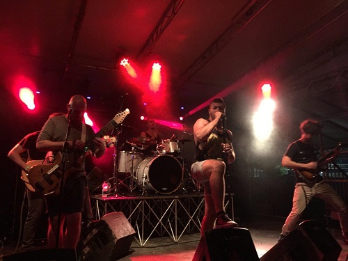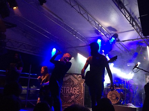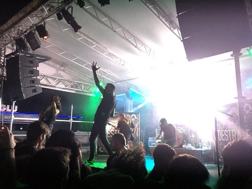 È giunto il turno degli headliner Destrage che, di fronte anch’essi al pubblico di casa, caldo e molto numeroso, vogliono scaricare a terra tutto il proprio background di tecnica e follia. Chi ha già visto in azione il gruppo lombardo sa a cosa mi sto riferendo, per tutti gli altri basti immaginare cinque pazzi, dannatamente bravi con i propri strumenti, scatenarsi sul palco generando un immediato marasma da parte del pubblico, che a sua volta restituisce con gli interessi tutta l’energia profusa sul palco dalla band. Lo show si apre con l’opener dell’ultimo disco “Destroy Create Transform Sublimate” che subito procura scosse telluriche nelle prime linee; i Destrage sono un meccanismo collaudato ed oliato alla perfezione, Paolo Colavolpe declama le sue linee vocali abrasive e goliardiche nello stesso tempo, gettando in pasto ai fans delle gemme del calibro di “G.O.D.”, “Double Yeah” e “Purania”.