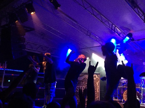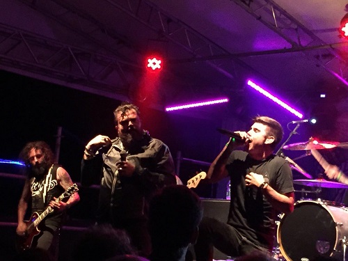 Questa serata segna il concerto di addio ai Mellowtoy per Matt Massa, una delle due voci della band, ed il gruppo milanese appare decisissimo a salutare il compagno di avventure con un concerto di livello, energico e potente di fronte al pubblico di casa. Forti dei consensi ottenuti con il validissimo “Lies”, disco che bilancia egregiamente la componente melodica nei chorus con lo screaming delle strofe, i sei si presentano sul palco carichi a molla, decisi a farsi valere. Il muro sonoro è di livello, con volumi elevati che si abbattono sugli astanti, che nel frattempo hanno riempito tutta l’area sotto il palco. I due cantanti Matt (scream) ed Emi (pulito) si sbattono coinvolgendo da subito il pubblico, che ripaga i Mellowtoy con il proprio supporto. Nel corso dello show vengono ripresi i cavalli di battaglia dell’ultimo disco, tra le quali ”Lies”, “Dead Colors”, “Destroy Yourself” e “Visions” inframezzati con pezzi più datati. L’ottima interazione tra i due cantanti viene adeguatamente sostenuta dalle chitarre di Morganti e Cavallotti. Certamente l’esperienza maturata nel corso degli anni viene messa in mostra nel corso della serata, evidenziando un gruppo sicuro e conscio dei propri mezzi. La cover di “Song 2” dei Blur porta ad un attimo di delirio sotto il palco con tutti i fans che saltano e cantano. Purtroppo, a causa dello slittamento dell’inizio dei concerti, i Mellowtoy sono costretti a tagliare un paio di brani alla fine, ma le ultime note scandite sul palco hanno fatto da accompagnamento ad un wall of death che ha coinvolto l’intera audience. Il pubblico applaude convintamente questa prova convincente e coinvolgente del sestetto brianzolo.