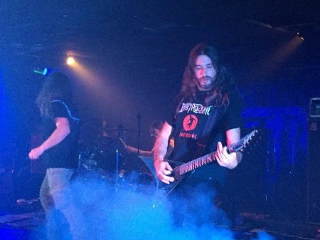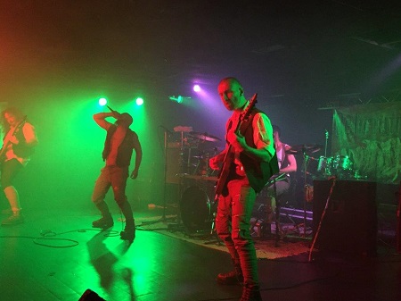 Sono i deathsters veneti DELIRIUM X TREMENS a prendere possesso del palco del Colony, ed il gruppo bellunese non ci mette molto a mostrare le proprie qualità in sede live. I suoni sono ancora da affinare sulle note di “33 Days Of Pontificate (Vatican Inc)”, in particolare la voce di Ciardo è sommersa dalla parte strumentale, ma il quartetto non pare badarci, tanto che in corso d’opera ci sono dei sensibili miglioramenti.