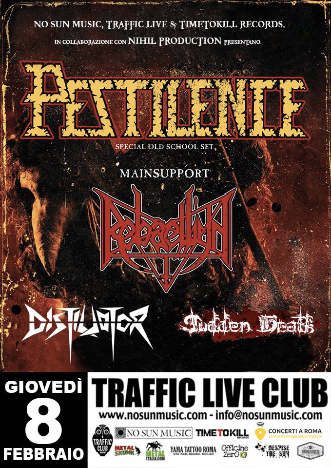08/02/2018 : Pestilence + Rebaelliun + Distillator + Sudden Death (Traffic Live Club, Roma)