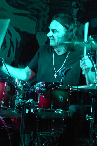 E’ tuttavia impossibile non viaggiare con la mente quando sale sul palco un personaggio del calibro di Vinny Appice, che ha suonato la batteria su album leggendari come “Holy Diver”, “Mob Rules”, “Last In Line” e tanti altri… Questo tour della Vinny Appice Band, che ha toccato anche il Giardino, un piccolo club che nel corso di una dozzina d’anni si è guadagnato la reputazione di locale di culto assoluto del veronese (in particolare per gli amanti di prog rock), in realtà è arrivato un po’ per caso. Vinny Appice doveva arrivare in Italia per alcune date lo scorso autunno, ebbe problemi fisici e le date saltarono. Poi fu la volta del fratello Carmine (anche lui batterista eccezionale, ancor più tecnico di Vinny) ad avere problemi ancor più seri, e saltò anche quel tour, ma quelle date sono state coperte in quest’occasione proprio da Vinny e dal suo gruppo di musicisti.