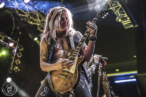 Il gruppo è formato da nomi importanti e da artisti preparati; infatti oltre al bravo Aldrich, che possiede un’ottima presenza scenica, alla voce abbiamo il superlativo e graffiante Keith St.John, alla batteria l’imponente Blas Elias (Slaughter) che picchia duro sulle pelli e al basso il preciso Brad Lang (Y&T), che mostra orgoglioso sulla sua chitarra la stampa della copertina dell’ultimo album “Face The Music”. Il sound, come scritto, è settantiano, molto legato ai Led Zeppelin, ma anche connesso agli eighties dei veterani Whitesnake e agli Aerosmith dei tempi migliori, la folla del Live Club gradisce e canta insieme agli americani lasciandosi trasportare da una band di spessore e di pura classe. L’amore per il rock si sente a pelle nella semiballata bluesy “If It’s Love” e nel lento acustico “Heaven Gets Me By”, dove in primo piano si apprezzano la grande voce del vocalist – che assomiglia molto a quella del grande Robert Plant – e le doti chitarristiche di Doug che per tutto il concerto ha gli occhi puntati soprattutto da parte di un pubblico femminile che apprezza giustamente anche il lato fisico dei quattro musicisti americani.