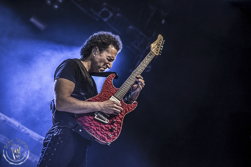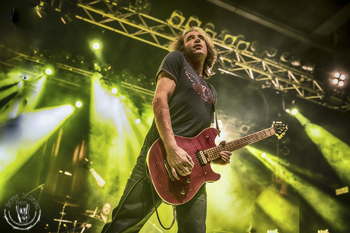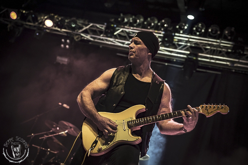 Dopo il terremoto provocato dai Keel, alle 19 e 30 è il momento degli attesi Burning Rain del celeberrimo guitar hero Doug Aldrich, che viene accolto maestosamente al suo ingresso con applausi e cori da stadio. Doug, alla stregua di Jeff Scott Soto e di Alessandro Del Vecchio è un altro artista di spicco della Frontiers Records ed è uno dei migliori chitarristi in circolazione a livello mondiale. Amante delle sonorità anni ’70 e ’80, suona subito con la sua super band i brani del suo ultimo lavoro, partendo dall’accattivante singolo groovy “Midnight Train”, proseguendo con il tirato refrain di “Revolution”, dove esegue un assolo dirompente e la potente metal “Natsy Hustle ”.