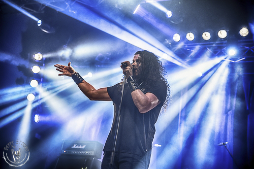 Sempre dalla Finlandia e al debutto nel Belpaese si presentano alle 15 e 30 gli inclassificabili, nel senso buono della parola, Leverage. Il sestetto ha un sound e uno stile orientato al symphonic metal con influenze power e a tratti pure folk che non li fanno inquadrare in un genere ben definito. Eccellente la prova del vocalist Kimmo Blom e l’attitudine di interagire sul palco trascinando il pubblico dal primo all’ultimo minuto ma tutto il combo in generale sprigiona una grande energia già con l’iniziale “Superstition” risalente all’album “Tides” del 2006, dove la tastiera e le chitarre creano un vortice trascinante e molto melodico. “Burn Love Burn”, inserito nel nuovo platter “DeterminUs”, è un pezzo tipico di symphonic metal abbastanza epico e trainante con venature prog che non dispiacciono affatto. Spicca pure la nuova e melodica “Wind Of Morrigan”, che in questo caldo pomeriggio milanese è uno dei brani più lenti dell’intera setlist. Perfetta la prova del nuovo chitarrista Mikko Salovaara e di tutta la band che dopo dieci lunghi anni di silenzio dimostra di avere una grande voglia di suonare dal vivo e di recuperare il tempo perduto. Musica dalla grande e rara originalità, per un live con un sound atipico per i gusti di questa kermesse musicale ma che fa di questa esibizione una delle più apprezzate della serata.