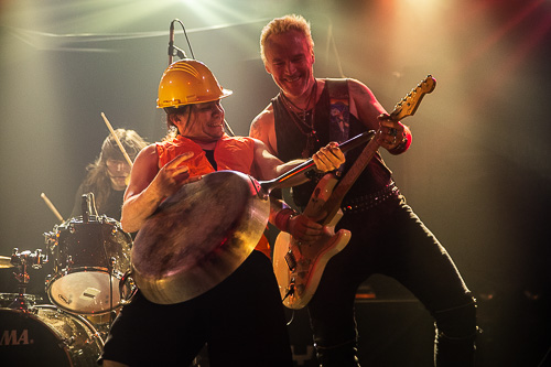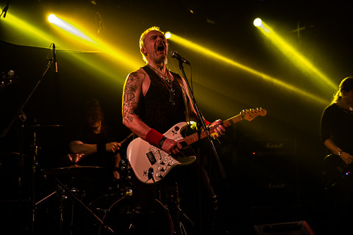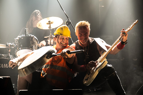 La prima formazione a salire sul palco del Campus Industry Music è quella dei lettoni Kiss Of The Dolls e la prima impressione è subito quella di un gruppo che ha ben poco di classic metal e invece molto più affine a un rock’n’roll dai toni caldi che a tratti si fa più potente e trascinante, quasi a creare un ponte tra un padre rocker e un figlio metallaro. Ricordate quando parlavamo di scherzi da ultima data del tour? Il momento da ricordare dello show arriva quando il bassista dei Red Partizan entra con tenuta da operaio on stage fingendo di suonare un’enorme padellona come se fosse una chitarra. Il pubblico è ancora piuttosto esiguo ma mostra una certa simpatia per una band che, più di tutto, mostra chiaramente di divertirsi sul palco, con l’attitudine e il trasporto di chi, ne siamo certi, ricorderà per tutta la vita questo scorcio di tour in apertura a una leggenda vivente del metal come Udo Dirkschneider.