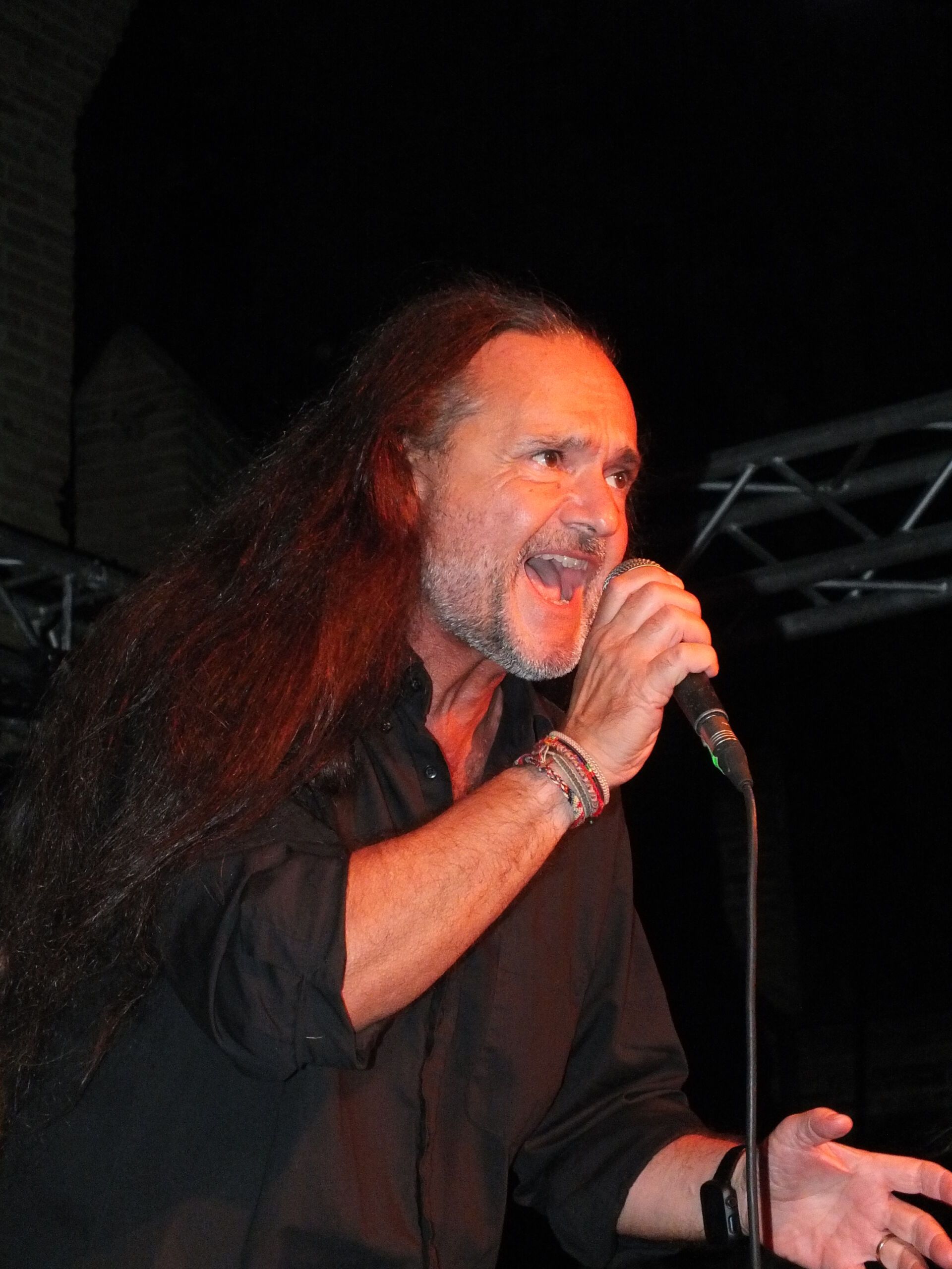 E la musica? Eccola qui, pronta e servita con un entusiasmo da ventenni, nonostante i Domine siano leggermente più grandi d’età. Con una formazione immutata dal 1999, la band toscana fila liscia come se avesse fatto concerti fino al giorno prima. “Thunderstorm” apre le danze e ogni volta è un piacere: power metal epico in grado di colpire fin dal primo ascolto, con una sezione ritmica collaudata da anni (Riccardo Paoli al basso e Stefano Bonini alla batteria) a far tremare le mura del castello. Sopra di esse la tastiera di Riccardo Iacono, da sempre uno degli elementi che contraddistinguono il sound della band con il suo tocco perfetto per smorzare il terremoto ritmico e rendere i brani più immediati. Proprio a fianco, a cesellare trame chitarristiche epiche come non mai, l’inossidabile Enrico Paoli, mente della band, autore di testi che denotano una cultura immensa e che innalzano i Domine di una spanna sopra il classico panorama power metal. Ma cosa sarebbe questa meravigliosa band senza il cantante, l’intrattenitore, il leader carismatico Morby? Un giovanotto, un ragazzo di 56 anni che ha dimostrato ancora una volta una tenuta vocale perfetta e una maestria sul palco da veterano, nonostante (dice lui, ma nessuno l’ha notato) fosse giù di voce.
