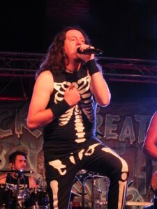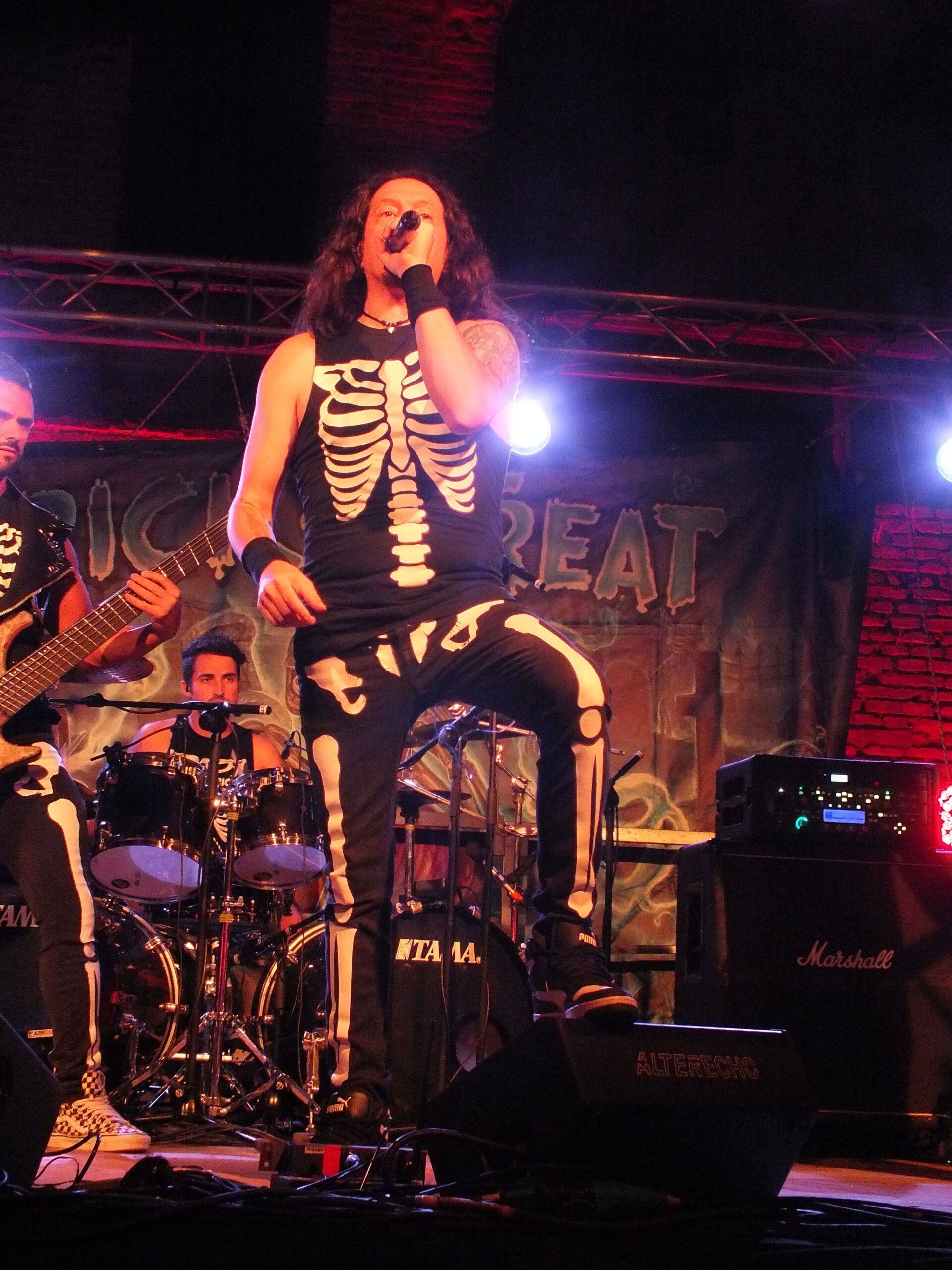 Nulla di tutto questo! Stiamo parlando delle mascotte degli irresistibili Trick Or Treat, carichi a pallettoni e in procinto di iniziare quello che in ordine temporale è il terzo concerto di serata. Non ce ne vogliano gli ottimi Draconicon né tantomeno gli Eternal Silence, ma è con il gruppo modenese che avvertiamo il primo salto di qualità rispetto all’esibizione; è normale, anche considerata la maggiore esperienza in fase di spettacolo dal vivo che i 5 musicisti possono vantare grazie ad una carriera ormai ventennale.