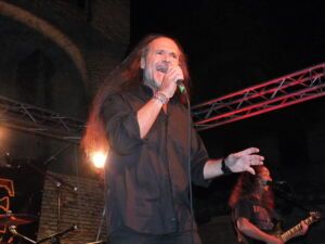 Il tempo è tiranno, i Domine risalgono velocemente sul palco ma l’ora è tarda, non c’è tempo per tutte e due le song proposte in chiusura. Morby chiede al pubblico se preferiscono sentire “Ride Of The Valkyries” o “Defenders”. Nonostante la mia opinione fosse per la meravigliosa cavalcata, non avrebbe senso un concerto dei Domine senza la sua classica chiusura. Ecco quindi che le note di “Defenders” risuonano nell’aria di Gradara, mentre sia sul palco che sotto l’espressione di tutti è quella della felicità. Il ritorno alla normalità che tutti ci meritiamo parte da questi volti, da questi sorrisi stampati, dall’emozione sulla faccia di Enrico Paoli prima di salire sul palco, dagli acuti inarrivabili di Morby, dall’atmosfera di grande fratellanza e dagli abbracci che si notano tra il pubblico, dove tante persone che non si incontravano da almeno un paio d’anni si sono ritrovate. Grandissimo concerto dei Domine, grandissimo evento, contraddistinto da una location fantastica e magica che vi invitiamo a visitare se non siete della zona. Passeggiando per i vicoli e per le mura merlate di Gradara, tra un negozio tipico e una piadina, potreste ancora sentire risuonare la voce di Morby, rimasta qui come quella di un fantasma, finchè impavidi metallari non verranno a liberarla!