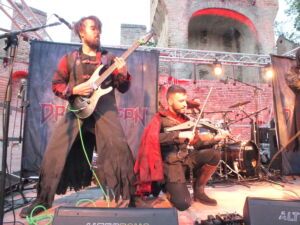 Mentre la rocca di Gradara inizia a popolarsi di fan spetta ai Draconicon iniziare l’assedio del castello. La band suona un power metal piuttosto granitico in cui si mescolano armonie ariose e melodie guidate dal violino di Simon Borgen, vero tratto distintivo della band, il tutto condito da un’atmosfera cupa, a richiamare i testi intrisi di decadenza epica dove è il male a regnare.