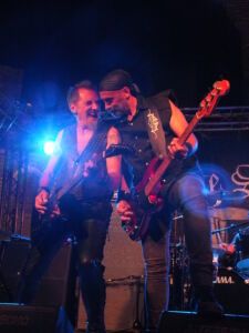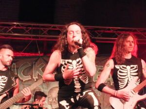 Probabilmente a causa di un ritardo nella tabella di marcia, i nostri partono a razzo con una tripletta niente male: “The Killing Queen”, “Tales From The North” (dall’omonimo album) e “Cleopatra”. Si nota fin da subito come la band sia affiatatissima e abbia voglia di divertirsi (e di far divertire). In particolar modo il “Capitano” Tony Mad, alla chitarra, non si risparmia di certo: tra cori, schitarrate e incitamenti è lui l’assoluto mattatore! Non sono da meno gli altri ragazzi della band, in particolare lo scatenato Valentino Francavilla, che sciorina note su note nei suoi vorticosi solo di chitarra!