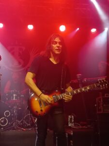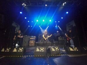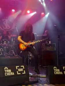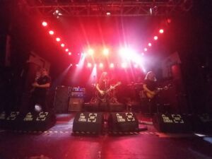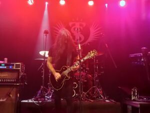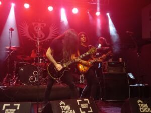 Come detto, la formazione deve presentare il nuovo album e, dopo un’introduzione registrata di Hans Zimmer, i Tierra Santa salgono sul palco (acclamati dal un pubblico decisamente caldo) e partono subito con un nuovo brano: un bel riffone introduce “Pecado De Ángel”, singolo nonché uno dei pezzi migliori di Destino. Il pubblico è già impazzito, pronto a scatenarsi al ritornello del brano. La band è molto compatta e offre una prestazione senza sbavature. Lo storico cantante e chitarrista Ángel San Juan cattura subito l’attenzione dei presenti ponendosi a centro palco. Il resto del quintetto non è da meno, grazie a una prestazione precisa e cazzuta. In particolare, molto “agitato” il bassista Roberto Gonzalo, altro membro originario del gruppo iberico. Devo segnalare anche il chitarrista Dan Díez, relativamente da poco in formazione: oltre a ritagliarsi un ruolo da solista, alternando qualche assolo con Ángel, ha fornito il proprio contributo anche ai cori, rendendo i pezzi decisamente più corposi. Bravo!