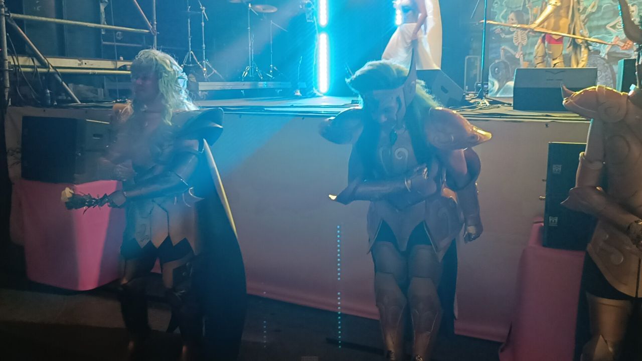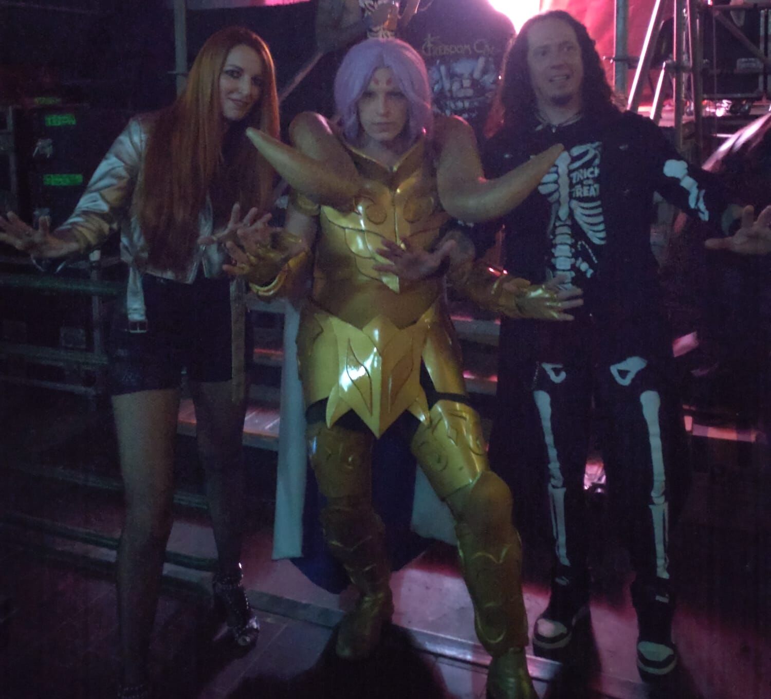 Prima che il pubblico possa riprendersi dall’entusiasmo travolgente ecco entrare Potowotominimak, il cantante dei Nanowar of Steel (che si esibiranno subito dopo) sulle note di “Prince Valiant” e altri cosplayer nei panni dei cavalieri Aquarius e Libra sulle note delle omonime canzoni. La gioia dei musicisti è evidente, contagiosa e non è un caso che nel frattempo il numero degli spettatori si sia triplicato. Dopo la sigla “Ken il Guerriero”, manca solo un grande finale per rendere il concerto indimenticabile.