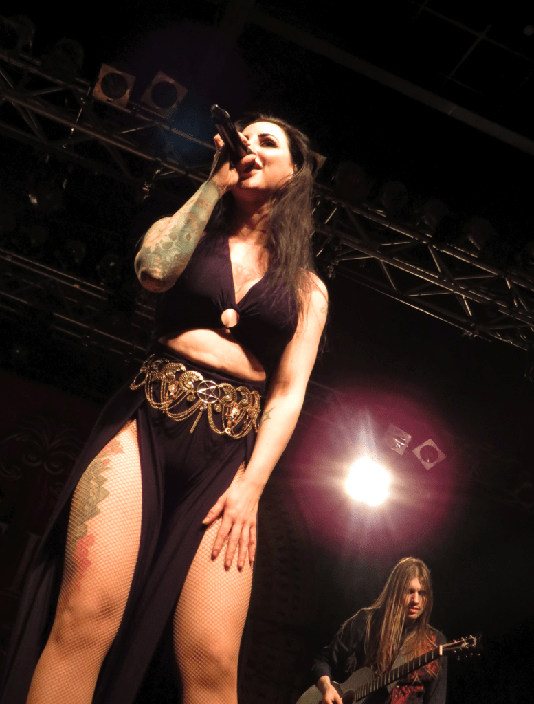 Prima di assistere però all’evento principale, la scena è tutta degli svedesi Eleine, giovane gruppo che si sta affacciando sulla scena symphonic metal mondiale. Per l’occasione anche loro propongono uno spettacolo completamente in acustico, che niente ha da invidiare alla versione originale dei brani, i quali anche in questa veste mantengono i loro toni oscuri e ne conservano i toni graffianti e le parti con voce sporca. Sin dal primo pezzo “Enemies” gli ascoltatori sono catturati, coinvolti dall’ottima presenza scenica della cantante Madeleine Liljestam e dal carisma del collega chitarrista Rikard Ekberg, il quale ci domanda « Chi avrebbe mai immaginato che uno spettacolo acustico potesse essere così metaI? ». Noi no. Infatti non siamo pronti pronti al fascino di “Whisper My Child” e “Memoriam”, e neanche alle coinvolgenti “Ava Of Death” e “Death Incarnate”. Tra una pausa e l’altra si moltiplicano gli applausi fino alla fine dell’esibizione, che si chiude sulle simpatiche note di “Elaine” degli Abba. Ai più curiosi consigliamo l’ascolto dell’album che questi artisti hanno registrato appositamente in occasione di questo tour intitolato (giustamente) Acoustic In Hell. Con la promessa di concedersi al proprio pubblico per foto e autografi lungo il resto della serata, gli Eleine si conquistano così l’affetto del pubblico e si portano a casa una bella vittoria. Ora non ci resta che aspettarne un ritorno per giudicarli nelle loro vesti usuali e vedere se confermare o ribaltare il risultato ottenuto.