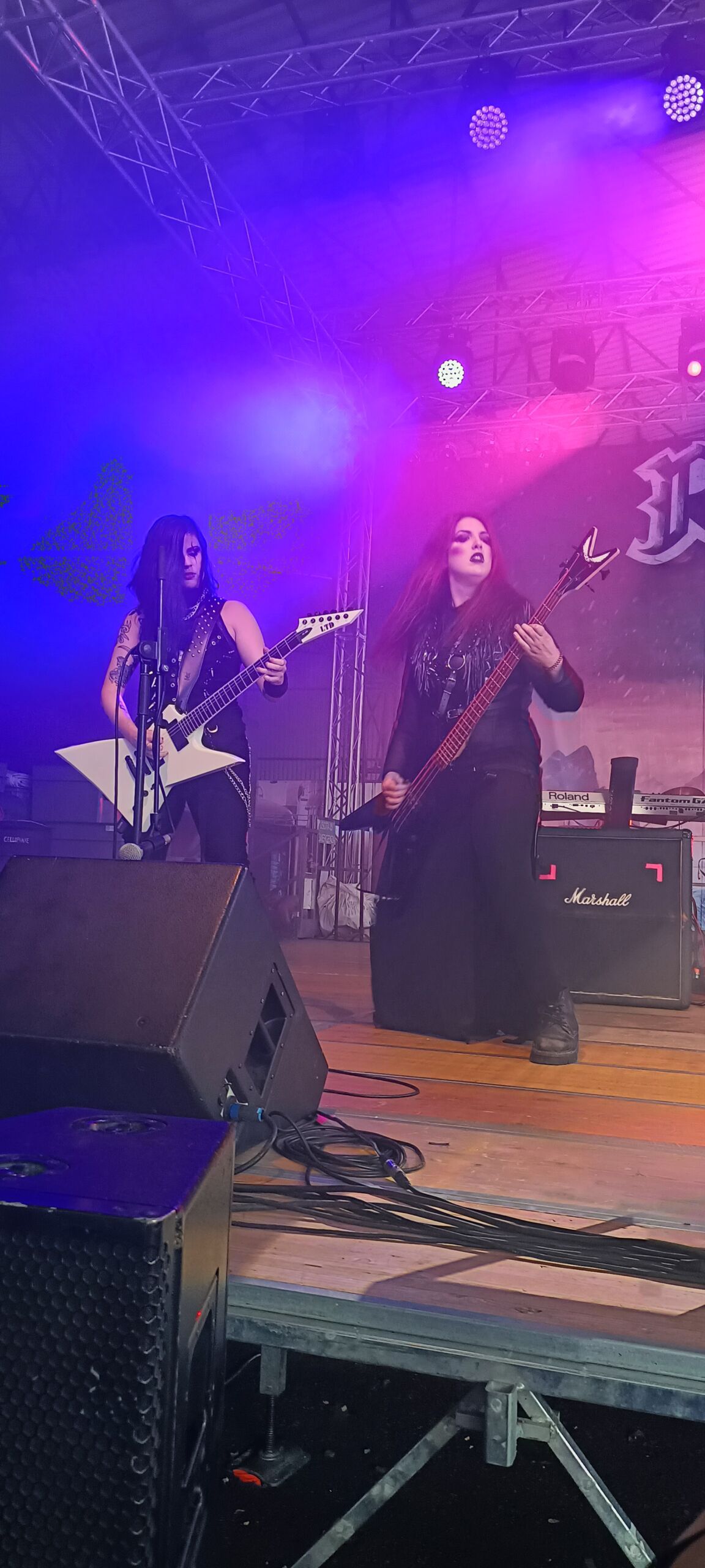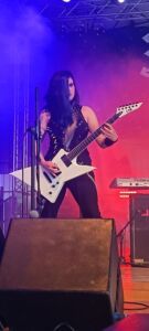 Il loro set breve, ma molto intenso si apre sulle note di “Our Lady Of Sorrows”, brano micidiale che mette in chiara luce tutto il potenziale delle nostre guerriere e propone ai presenti il primo dei tanti duelli vocali tra le parti growl di Priscilla Foresti e quelle più melodiche e pulite Greta Antico, il tutto supportato dalle titaniche e potentissime linee di basso della succitata Priscilla Foresti e dalla sezione ritmica orchestrata dalle terrificante mazzate di batteria di Federica Piscopo ed ai maestosi riff di chitarra di Gloria Capelli. Lo show è un concentrato di adrenalina allo stato puro e traghetta tutti i presenti in un autentico “viaggio allucinante” nell’universo Hellfox grazie alle magistrali esecuzioni di “Haunted”, “Raising”, “Rebirth”, “Your Name” e “Bleeding Machine” che chiude un magnifico set che, purtroppo, è stato troppo corto.
