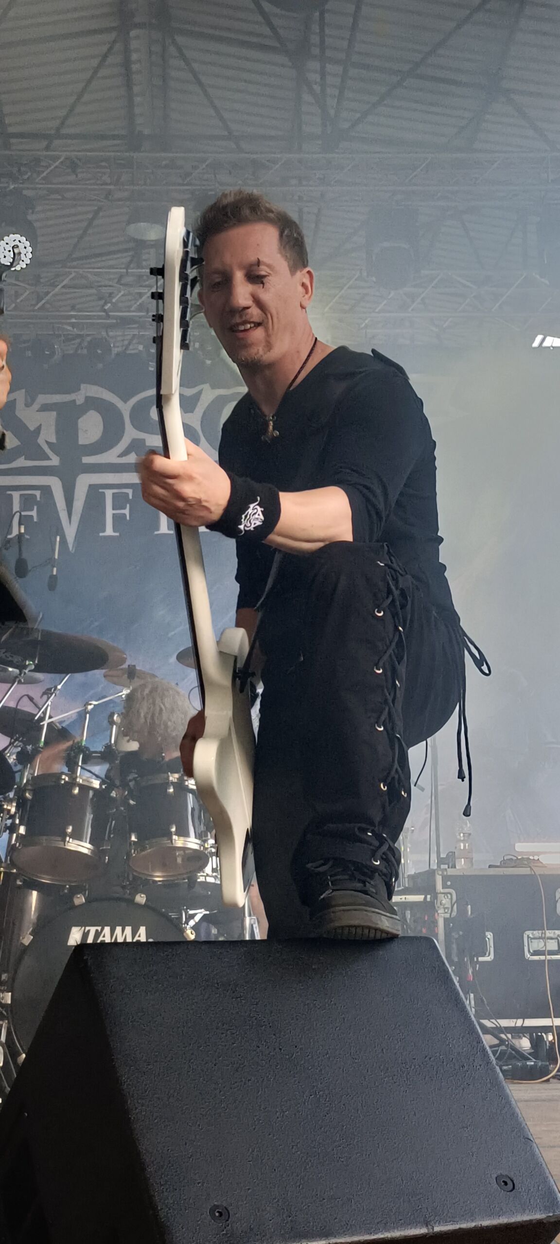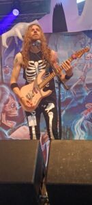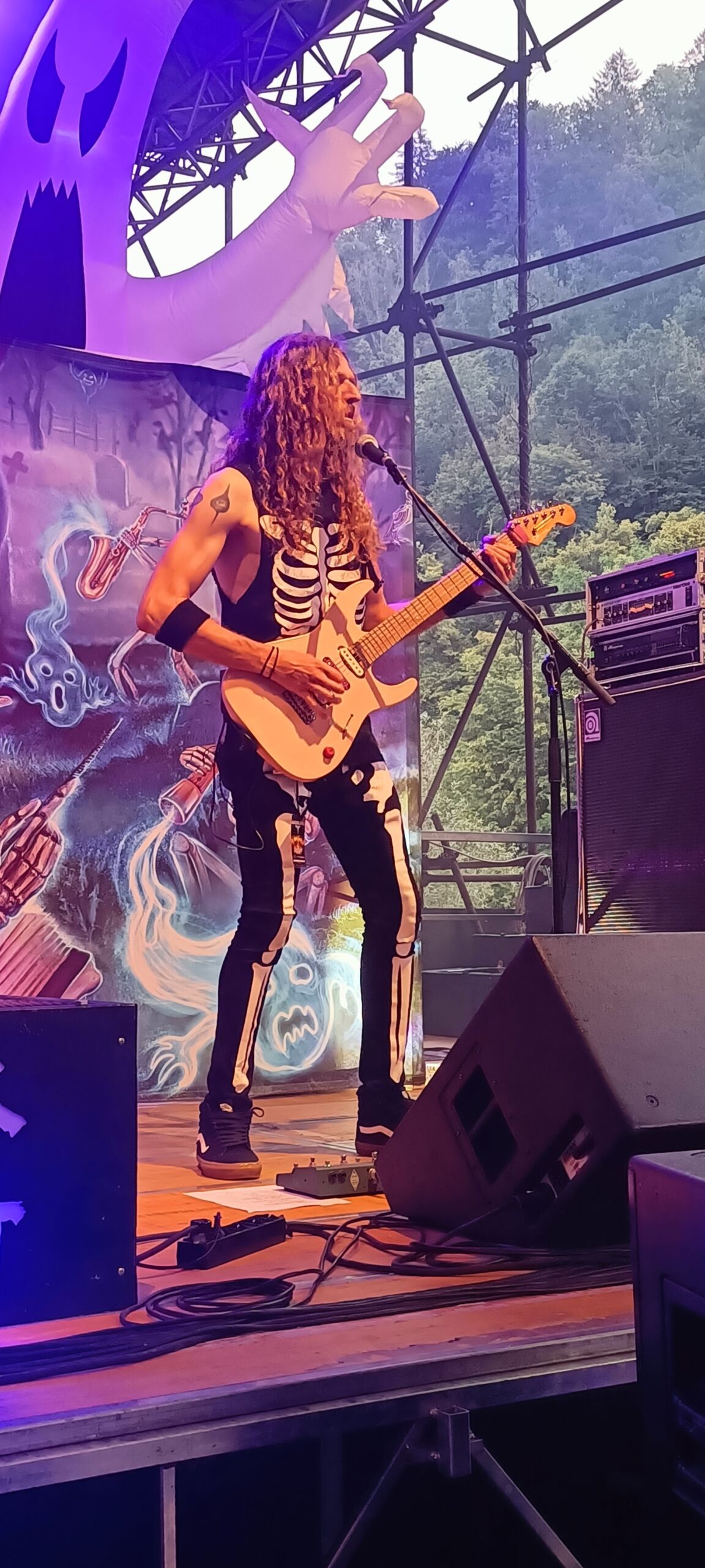 La scaletta è stata una continua alternanza di brani vecchi e nuovi che hanno letteralmente fatto impazzire il pubblico e generato un headbanging poderoso, soprattutto durante la magnifica esecuzione di “Aquarius: Diamond Dust”, uno splendido brano contenuto nell’album del 2020 The Legend Of The XII Saints impreziosita anche dalla titanica sezione ritmica splendidamente orchestrata dal basso di Leone Villani Conti e dalla batteria di Dario Capacci. Non sono mancati i momenti di puro “cazzeggio” come l’improvvisazione di una versione metal di “L’Amour Toujours” di Gigi D’Agostino per festeggiare il compleanno dell’ascia Luca Venturelli. E come di consuetudine lo show si è concluso con la mirabolante e divertentissima esecuzione di “Like Donald Duck” che ha per messo alla band di salutare in maniera affettuosa e goliardica tutti i propri fan.