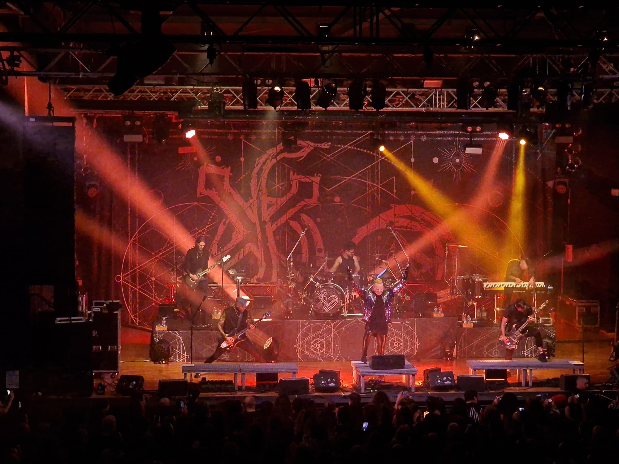 Precisi e puntuali alle 19:30 salgono sul palco i Blitz Union, industrial metal con un pizzico di elettronica direttamente dalla Repubblica Ceca. La stampa li ha audacemente definiti i “nuovi Rammstein della Gen Z” e non ha tutti i torti: mescolano bene i ritmi semplici, cadenzati e pesanti dello stesso genere a elementi più orecchiabili e ballabili. Così il quartetto riesce ben presto a sciogliere il pubblico presente, già ben disposto, che salta volentieri a ritmo di musica seguendo il cantante Mark Blitz sui cori a pugni alti. La proposta musicale e scenografica è chiaramente portavoce di messaggi sociali e politici importanti per la generazione a cui questi giovani musicisti appartengono, i quali hanno quindi assunto un compito di propaganda artistica che non prendono alla leggera, dimostrando di saper tenere il palco con decisione e risolutezza. Un’eccellente prova superata per questi ragazzi che ci hanno dato un’ottima impressione, un’esperienza concreta che riesce a lasciare il segno.