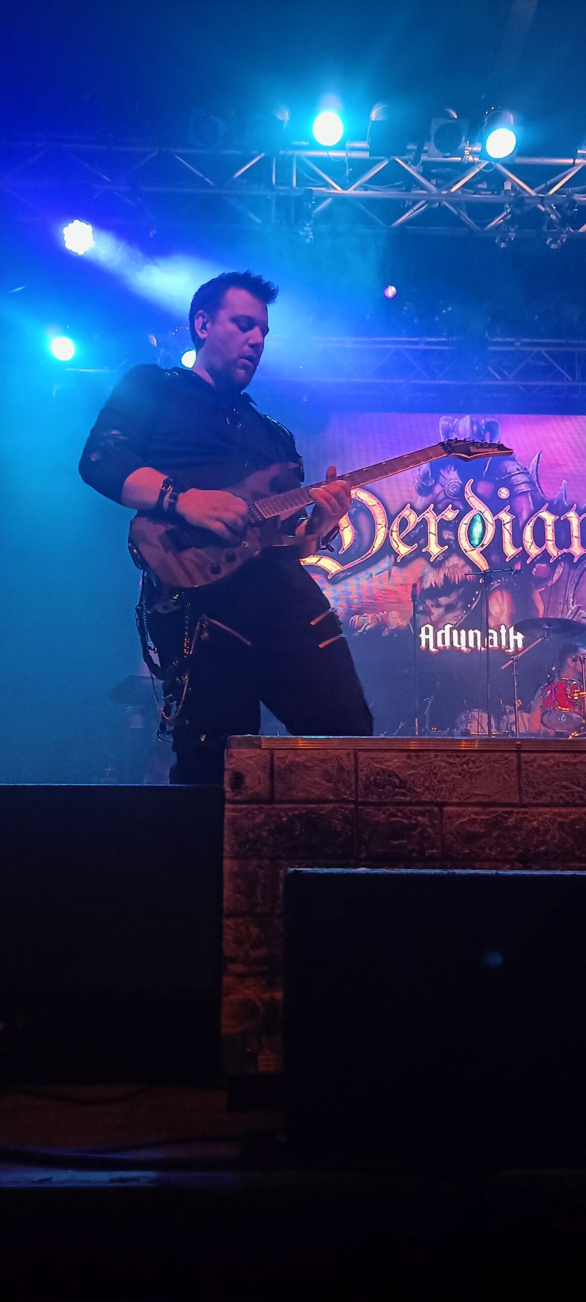 L’onere, ma considerato il valore della band, posso senza alcun dubbio di smentita dire, l’onore di aprire le danze è toccato ai lombardi Derdian, combo nato nel 1998 e votato anima e corpo alla ricerca di sonorità di chiara matrice Epic Fantasy Power ha regalato ai già numerosi presenti un set che, seppur breve, è risultato molto intenso ed altamente coinvolgente e che grazie a delle autentiche mazzate sonore del calibro di “Human Reset”, “Battleplan” e “The Hunter”, hanno soddisfatto anche i defender più incalliti grazie all’alchemica e geniale miscela di riff potenti e taglienti e parti molto melodiche e cadenzati.