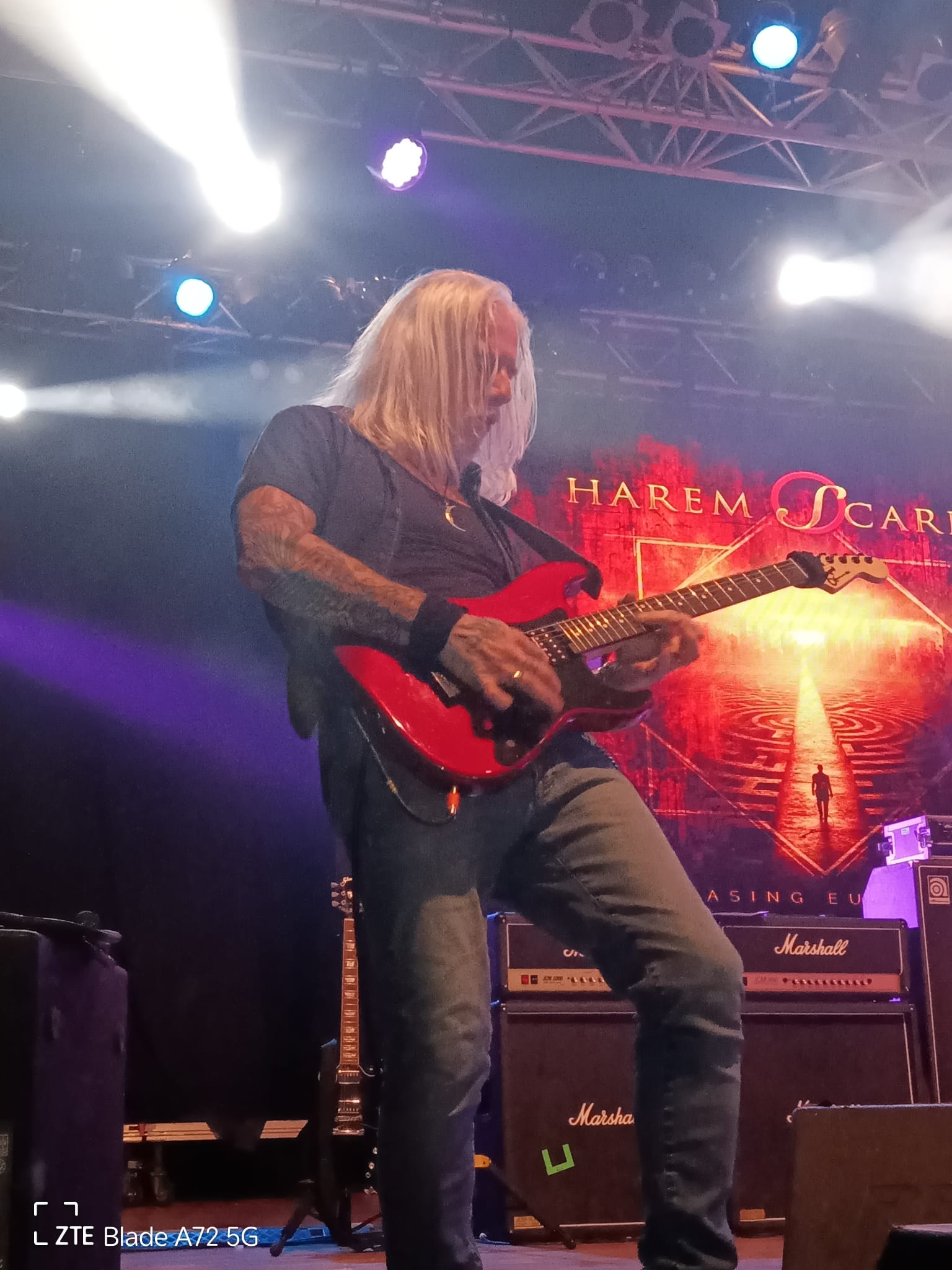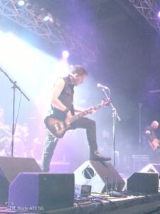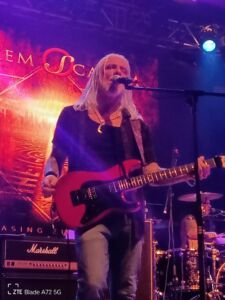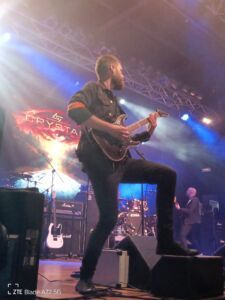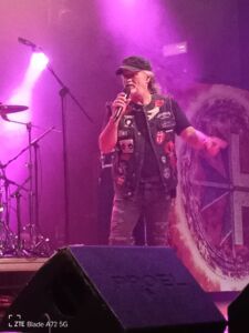 L’ossessione di Tramp di tenere in vita le canzoni del suo “leone bianco” purtroppo continua ultimamente con le registrazioni del repertorio della sua ex band, proprio con la Frontiers che dà alle stampe due album intitolati: Songs Of White Lion, ennesimo e patetico omaggio ad un passato e a un gruppo che non ritornerà più. Mike è un ottimo cantante e un grande interprete e lo si sente in studio dove pur mantenendo le versioni originali li ammoderna sapientemente rendendole più fresche e attuali rispetto a quarant’anni fa. Stasera mi aspetto che canti anche qualcosa di suo e soprattutto di inedito, ma il logo sulla locandina e lo sfondo dietro la batteria con la scritta Mike Tramp’s White Lion è già tutto un programma e non lascia dubbi. L’iconico cantante, con addosso un bel completo jeans e accompagnato dalla sua incredibile band apre le danze con la tuonante e robusta, “Lights And Thunder”, ricca di melodie e momenti memorabili dettati da arazzi e assoli di tastiera che si alternano a quelli chitarristici dell’ottimo Marcus Nand. Quest’ultimo, insieme a Mike, è il protagonista dello show e in un certo senso non fa rimpiangere il mitico Bratta che tanto aveva dato per il successo di questo gruppo storico. Tramp parte bene e continua alla grande sfoggiando un fisico asciutto e atletico da fare invidia, ma è la voce, per fortuna, che spacca ancora e riesce a coinvolgere un pubblico partecipe e ansioso di vedere una leggenda del genere all’opera. Il popolo del festival lo sostiene canzone per canzone e non potrebbe fare altrimenti perché il singer scandinavo delizia tutti con brani intramontabili come quelli presi dall’album Pride del 1987: “Hungry”, “Lonely Nights”, “Wait” e “Tell Me” che ricevono un’ottima accoglienza. La musica parla da sola. Come il buon vino, la musica e i musicisti migliorano con il tempo. Il suono è buono soprattutto dopo quello che è successo nei giorni precedenti e lo si sente nel giusto bilanciamento degli strumenti che rende ottimale il mix tra voce e suoni. Il frontman punta pure su tracce malinconiche e dal forte impatto emotivo e sonoro, come la galoppante e cadenzata “El Salvador”, l’arpeggiante e sognante “When The Children Cry” e la sempre magnifica e vivace “Lady Of The Valley”, che conclude lo spettacolo in modo epico. Ma prima di queste tira fuori le unghie proponendo la dura “All The Fallen Man” da Fight To Survive del 1985 con il chitarrista solista Marcus Nand, una vera e propria forza della natura, che concede ruvidi riff e virtuosismi da vendere seguito alla batteria da Brentt James Arcement il quale, per tenere il ritmo, picchia le pelli così forte da quasi distruggere i suoi tamburi sotto gli occhi compiaciuti di un Tramp visibilmente felice. Tornando all’esecuzione di “When The Children Cry”, song più amata e cantata dai presenti, qui Mike racconta di averla scritta dopo aver fatto un sogno in cui si chiedeva come sarebbe stata percepita la sua musica dai suoi figli negli anni a venire. Anni che, per vari motivi e in molti campi, ormai stanno andando sempre a peggiorare. Nel complesso, a parte le belle canzoni proposte, la cosa che colpisce del vocalist è che all’inizio di ogni brano fa sempre una breve introduzione facendoci partecipi della sua carriera e delle sue emozioni. Insomma, un gran chiacchierone che scambia battute amichevoli con i suoi compagni di band e il pubblico, facendo sorridere ma dimostrando sempre una forte sensibilità quando tocca argomenti seri. Ah, dimenticavo che la scaletta regala diversi brani dall’album di debutto dei White Lion del 1985 come, la super ballata melodica “Broken Heart”, che mette in risalto l’intatta forza vocale di Mike creando in platea un’atmosfera riflessiva e romantica. Al termine Tramp, dopo un concerto senza macchie e sbavature, saluta tutti con la promessa di continuare a cantare in futuro le song dei White Lion (non avevo dubbi) e di realizzare un nuovo album in studio. Vedremo!