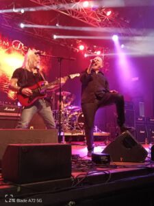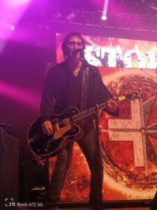 Che fine hanno fatto i Krokus? Nell’attesa che Marc Storace prepari la strumentazione per il suo momento al Frontiers Rock Festival mi sovviene d’istinto proprio questa domanda. Che io sappia, l’addio dalle scene musicali è partito nel 2018 con il tour Adios Amigos concluso nel dicembre 2019. Poi l’arrivo della pandemia blocca il sogno di Storace di continuare anche se dopo l’emergenza c’è qualche esibizione e nulla di più. In attesa di una resurrezione della band elvetica, che a questo punto pare poco probabile, il buon Storace mette su un bel gruppo rock dopo aver accumulato un bel po’ di materiale per i suoi dischi solisti. Il settantatreenne cantante maltese appare in piena forma, con addosso un giovanile giubbottino di jeans, già con l’apertura del mid tempo “Rock This City” tratto dall’ultimo Crossfire. Questo pezzo mostra come il suono dei suoi Krokus sia sempre al centro della sua creatività artistica. La voce graffiante e rauca è la ciliegina sulla torta e accompagna i distorti giri di chitarra elettrica che, insieme alla potente sezione ritmica, culmina in un affascinante ritornello. L’ugola per fortuna è sempre la stessa così come anche il suo modo di intrattenere e parlare con il pubblico, come nel caso di “Screaming Demon”, brano di hard rock melodico alla AC/DC che possiede un pizzico di metal guidato dal suo inconfondibile e forte stile vocale ed estrapolato sempre dall’ultima sua fatica discografica.