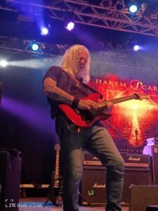 Dopo l’impetuoso spettacolo dell’arzillo Tramp tocca ai famosi canadesi Harem Scarem. Il Live Club è pieno di persone ed io sono bloccato nella mia posizione strategica, ma è da più di due ore che non vedo e non sento Luca al quale mando comunque un messaggio vocale avvisandolo che da qui a mezzanotte sono inamovibile ed irreperibile per chiunque. Questo ultimo frammento di festival è uno dei momenti più importanti e devo godermelo fino alla fine, così rimaniamo che ci vedremo in auto al termine del concerto. In un parterre gremito e sempre più bollente, i canadesi trovano pane per i propri denti aprendo alla grande con “Better The Devil You Know” dal nuovissimo album Chasing Euphoria. Qui l’isteria collettiva si unisce ai contagiosi riff di chitarra elettrica dell’eccellente Pete Lesperance, ipnotizzando un pubblico che salta e canta insieme al vocalist Harry Hess. Subito dopo i nordamericani, vestiti in modo sobrio per la serie l’abito non fa il monaco, continuano con un altro brano preso dall’omonimo e splendido disco del 1991, “Hard To Lone”, che presenta un ritornello cantato da tutti e quattro i membri della band e arricchito da prolungati assoli di chitarra che fanno immediatamente presa. Gli Harem Scarem sono un altro di quei gruppi in cui parla solo la musica di qualità e nient’altro. Sul palco, a parte il movimentato costante di Lesperance, con i suoi lunghi capelli argentati e Darren Smith che a torso nudo dietro le pelli canta il nuovo singolo “Gotta Keep Your Head Up”, troviamo il sostegno vocale nei cori di Hess che in verità è molto statico ma possiede una voce fantastica da far venire i brividi. Il quartetto con eleganza, classe, empatia ed esperienza mette a proprio agio i timpani di tutti mostrando anche un livello tecnico molto elevato, come nel caso del chitarrista Lesperance che mostra tutta la sua abilità esecutiva e compositiva. In effetti non è un caso che dopo quarant’anni i canadesi siano ancora al Top e siano una delle band più importanti di AOR al mondo. A parte il rock melodico il quartetto, ha nel suo repertorio pure dei robusti pezzi di hard rock, come l’avvolgente e corale, “Stranger Than Love” o brani strappalacrime come la sentimentale ballata in pieno stile AOR: “Distant Memory”. Quest’ultima provoca, con sdolcinati tocchi di tastiera e un romantico ritornello, un sobbalzo emotivo tra i supporter più accaniti. L’entusiasmo della gente è alle stelle, ma la sorpresa più grande è l’apparizione dell’affascinante Cassidy Paris, già vista e ammirata nella prima giornata, che insieme a Hess canta in duetto “The Death Of Me”, song che si presta alla doppia voce maschile e femminile. Dopo questo buon esempio di come la potenza si possa unire alla melodia, gli Harem proseguono con la ritmata e roboante, “Here Today Gone Tomorrow”. Qui il singer con la sua voce passionale e pulitissima accende i cuori dei presenti, ma è rinforzato da un muro sonoro composto di una, di due o a volte tre strati di voci, le quali creano un’imponente parete sonora che è poi l’inconfondibile marchio di fabbrica del combo canadese. La temperatura si alza e fa un caldo da morire, sia per la bravura dei musicisti che scaldano e trascinano l’intera platea con le loro splendide armonie, sia per il pienone che si registra nel locale. Si rende quindi necessario fare una pausa con il pezzo strumentale e solista di Pete, “Mandy” tratto dal capolavoro assoluto Mood Swing e capace di dare alla band una pausa necessaria prima dello sprint finale. In effetti gli Harem Scarem, ricaricate le batterie, ripercorrono il loro ultimo decennio con pezzi memorabili, come la super orecchiabile “Sinking Ship”, il cui canto corale ha sorprendentemente ottenuto una delle migliori accoglienze della serata, la lenta e malinconica “Honestly” la quale dimostra che Harry ha ancora una delle migliori voci naturali del rock melodico internazionale. I riflettori si abbassano e gli smartphone accesi e mostrati in aria creano un grande effetto e un imponente coinvolgimento vocale perché tutti cantano il ritornello insieme al mitico Hess, abile anche nell’arpeggio della sua chitarra classica. Piace pure l’allegra e vivace “Sentimental Blvd”, che vede nuovamente dietro il microfono il polivalente drummer che con la sua possente ugola crea un bel contrasto con le svenevoli corde vocali di Harry. Della serie non scontentiamo e cantiamo tutti viene data anche la possibilità al bassista Mike Vassos di cantare e interpretare l’inattesa cover del connazionale Bryan Adams, “Summer Of ’69”, che essendo una bellissima e coinvolgente canzone fa felice il popolo del festival che applaude e urla di gioia. Certo Bryan la canta molto meglio ma questo Mike lo sa ecco perché fa il bassista a tempo pieno. Gli ultimi omaggi all’ormai conclusivo Frontiers Rock Festival sono la super melodica “Slowly Slipping Away”, l’ultimo singolo “Chasing Euphoria” vero e proprio inno ultra melodico che fa praticamente alzare le mani in aria l’euforica e assordante folla del Live Club e la finale “No Justice” dall’album Moodswings del 1993, che presenta gli assoli orientaleggianti e iperbolici del maestro Lesperance. Riflettendoci su, proprio con il loro secondo disco Moodswings gli Harem Scarem si sono allontanati dal suono melodico e raffinato dell’album di debutto acquisendo personalità, audacia ed incorporando la melodia in un suono più musicale e robusto. Dopo tutti questi anni, queste sono ancora le canzoni sognanti ed emozionanti che ci si aspetta da uno dei migliori gruppi di questo genere musicale. Concerto praticamente impeccabile! È tardi, sono stanco dopo questi tre tirati giorni di musica rock ma felice. Non contento e per la gioia di Luca, accendo a tutto volume la radio in auto e mi dirigo verso i Navigli di Milano immaginandomi i gruppi dell’ottava edizione del Frontiers Rock Festival. La notte è ancora 