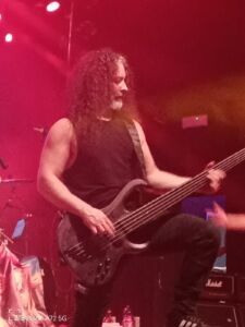 A proposito di allegria ma dov’è finito Luca? Dopo vari giri interni ed esterni del locale non riesco a trovarlo ma quando ormai rassegnato mi dirigo sotto il palco, lo vedo dietro il bancone del bar a farsi dei selfie con i baristi e naturalmente a bere degli alcolici che da lontano non riesco a decifrare, ma scommetto che è riuscito a scroccare gratis. Io di contro, da qui alla fine devo essere lucido e sobrio, come del resto lo è stasera l’ottimo Robin McAuley (ex Grand Prix, ex Far Corporation, Black Swan, ex Michael Schenker Group). L’irlandese sta vivendo incredibilmente una seconda giovinezza sia a livello fisico che discografico, puntando nella prima parte dello show sui suoi ultimi pezzi solisti pescati dai recenti album: Standing On The Edge del 2021, Alive del 2023 e l’ultimo Soulbound del 2025. La scelta delle canzoni è azzeccata a partire dalla portentosa e armonica “Thy Will Be Done” che infiamma da subito gli animi dei presenti, curiosi di vedere all’opera un uomo leggendario e ancora all’altezza come Robin. Attorno a lui ruota un gruppo di musicisti italiani di grande spessore come Alessandro Mammola e Andrea Seveso alle chitarre, Alfonso Mocerino alle pelli, il bassista Andrea Arcangeli (DGM) e il tastierista Alex Lucatti (Deathless Legacy), la cui recente uscita dai Vision Divine ha fatto parecchio discutere i fan della band italiana e non solo. Questo perfetto connubio artistico e scenico si sente e si vede anche nella seguente “Standing On The Edge”, dove la rauca voce di Mcauley la fa da padrone accompagnando un bell’ottantiano e zuccheroso refrain, arricchito da un fantastico assolo di chitarra. Il sound dell’irlandese è un fresco hard rock melodico con elementi di melodic metal che lo rendono più appetibile a chi ama dei suoni più forti. Robin, nonostante abbia anche lui superato i settanta anni non si risparmia sia vocalmente e sia nei movimenti sorridendo sempre alla gente del festival che lo incita in continuazione. Audacemente prosegue con i suoi pezzi come nell’atmosferica “Alive”, in cui la keyboard e una grintosa chitarra elettrica mettono in moto una melodia e un ritornello avvolgenti e trascinanti, che rimangono subito in mente rilassando una platea attenta e a tratti in rigoroso silenzio. Piace anche la ribelle e ritmata “Dead As A Bone”, ma le ultime tre del suo repertorio solista sono quelle che fanno traboccare di gioia gli amanti del genere che con le braccia in aria cantano i gradevoli ritornelli dell’iperbolica “Til I Die”, dove la band sprigiona delle vigorose note condite dalla rauca e calda ugola del mitico cantante e culminante in un ottimo ritornello. L’iniziale linea di basso lancia poi la super melodiosa “Soulbound”, che con un mieloso ed orecchiabile ritornello, e un fulminante assolo chitarristico non fa prigionieri in sala. L’ultima e battente “Best Of Me, è una galoppante e massiccia song di melodic metal spinta da una martellante sezione ritmica e da frenetiche chitarre elettriche. A questo punto, prima che il nostro guerriero irlandese si butti indietro nel tempo con le canzoni ottantiane della Michael Schenker Group, viene lanciata sul palcoscenico, da alcuni supporter di un fan club greco, una grande bandiera raffigurante le foto dei giovanissimi McAuley e Schenker quando suonavano nella stessa formazione. Sicuramente questo è uno dei momenti più toccanti dello spettacolo perché il vocalist visibilmente emozionato posiziona il drappo sotto la batteria del tellurico Mocerino mettendola così in bella mostra. Dalla maestosa “Love Is Not A Game” per finire all’epica e sentimentale “Anytime”, intervallate da brevi discorsi e ringraziamenti da parte del singer, la platea esplode in continue approvazioni per quello che magnificamente ode. Anche qui l’intelligente Robin lascia che alcuni ritornelli siano cantati a squarciagola dalla folla posizionando il microfono in direzione della gente festante che lo saluta giustamente e meritatamente da autentica rock star. La ciliegina sulla torta sarebbe stata anche l’esibizione con il gruppo del chitarrista e produttore Aldo Lonobile, messo dietro le quinte come supervisore, che ha collaborato con il bravissimo Mcauley in studio negli ultimi e riuscitissimi dischi. Per la serie: non si può avere tutto.