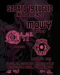 AltWave Events in collaborazione con Heavymetalwebzine.it è felice di annunciare una nuova data presso il Circolo ARCI “Da Giau” Sabato 19 Luglio con una serata all’insegna delle sonorità alternative del sottosuolo torinese. Per l’occasione i protagonisti saranno No More Extasy, Be My Lust e Mowy.