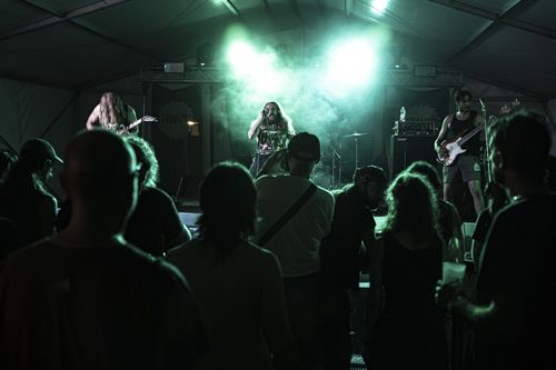 Hanno fatto esattamente quello che dice il titolo… Hanno portato un buio pesto pazzesco sul palco (difficilissimo fotografare), nei suoni e nell’aspetto da B-movie di qualche decennio fa. Hanno l’orrore nel sangue e lo spruzzano con riff pesanti sul pubblico stoico, rimasto invicto a qualsiasi fatica fisica, mentale, aurale. C’è una chitarra che scava le tombe per resuscitare i morti, una voce che travalica le dimensioni. Mi aspetto che si apra un portale che libera demoni ma invece procedo indenne verso il mio camper, ora invaso dagli incubi ma anche dalla voglia di vedere l’alba domani… perchè poi verrà il tramonto!