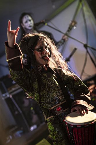Ricercatissimi dal pubblico, tanto che la piccola tenda diventa una metropolitana di Tokyo nell’ora di punta (e fotografare è difficile), questi mitologici esseri escono dalle quinte vincendo immediatamente il premio per i migliori costumi. C’è tutto, tradizione e nobiltà, culto guerriero e horror nipponico, manga, spiritualismo e futurismo. Per non parlare delle due bellissime bambine che infestano il palco con la loro teatrale simpatia (e un pò d’impaccio). Musicalmente, sono sbarellatissimi come solo gli estremorientali sanno fare, ma non è una sorpresa perchè lo fanno da più di un quarto di secolo. Sperimentano con fiati, composizioni disciplinatamente anarchiche, ritmi sussultori, schizzi di reggae e vocalizzi logorroico-schizofrenici veramente d’impatto. Arigatō! (Nota un pò spocchiosa, perdonatemela… Vi prego, il nome si pronuncia “saih” e non “sig”).
