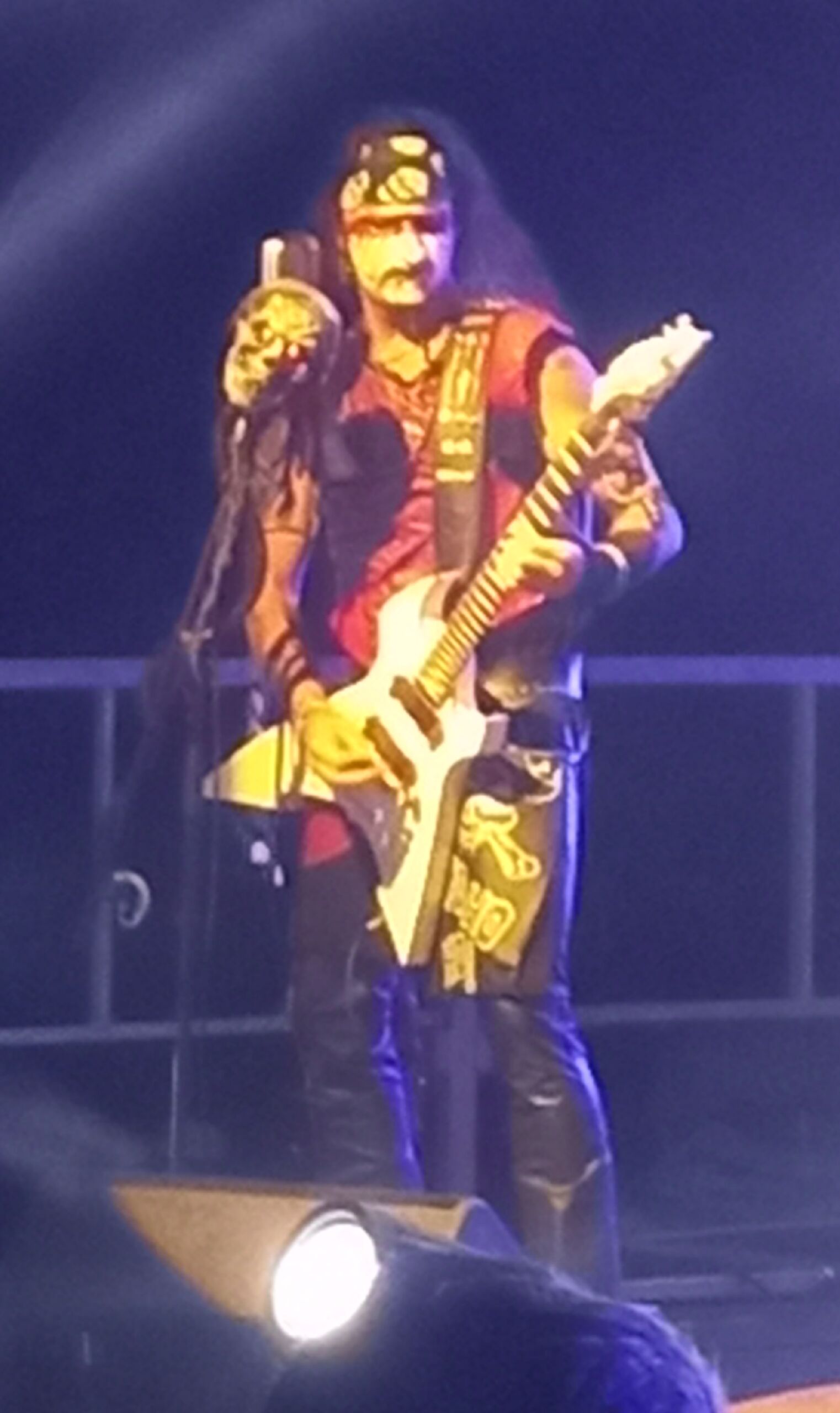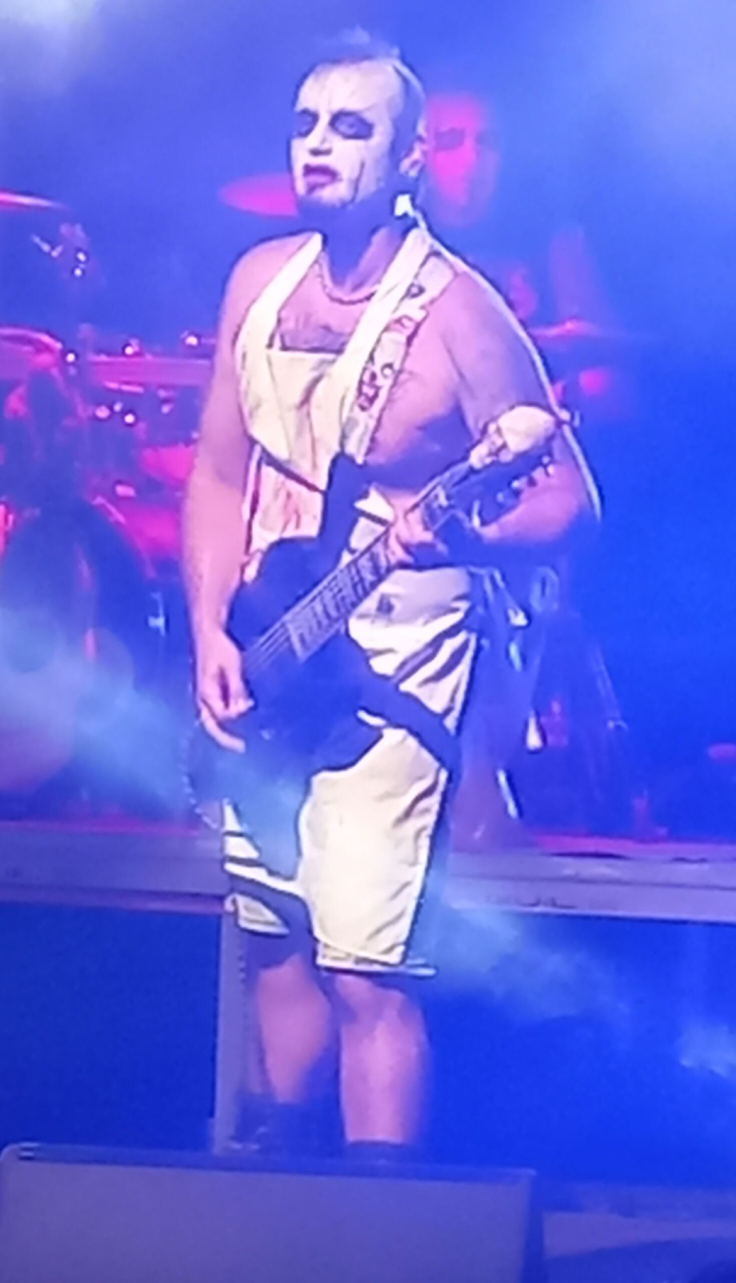 Bellissimo il basso in stile Kiss di Mr Hyde, un bassista che non sta fermo un attimo e percorre in lungo e in largo il palco con movenze feline, a differenza del chitarrista Five, vestito da macellaio assassino, che avanza avanti e indietro impedendomi di riuscire a fare una foto decente dalla mia postazione al batterista Demonico (in forza dal 2008 al 2015). Questa sera sostituisce il titolare Floyd, anch’esso in vacanza come Eros dei Darkhold. Ma come, italiani che vanno in ferie ad agosto, ma non si è mai visto …