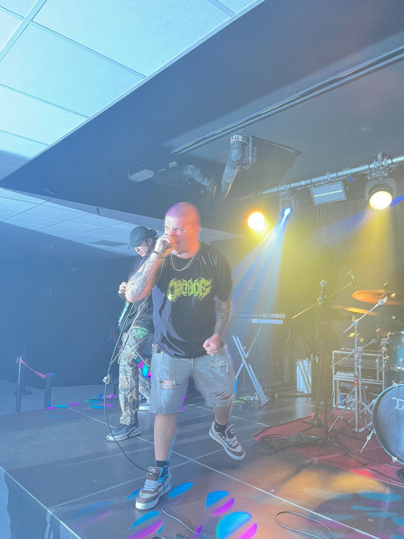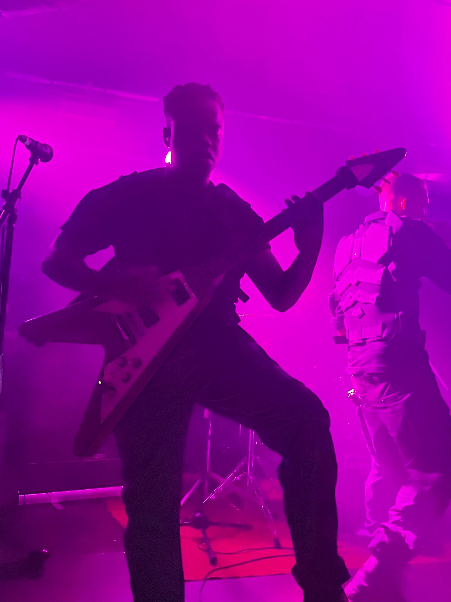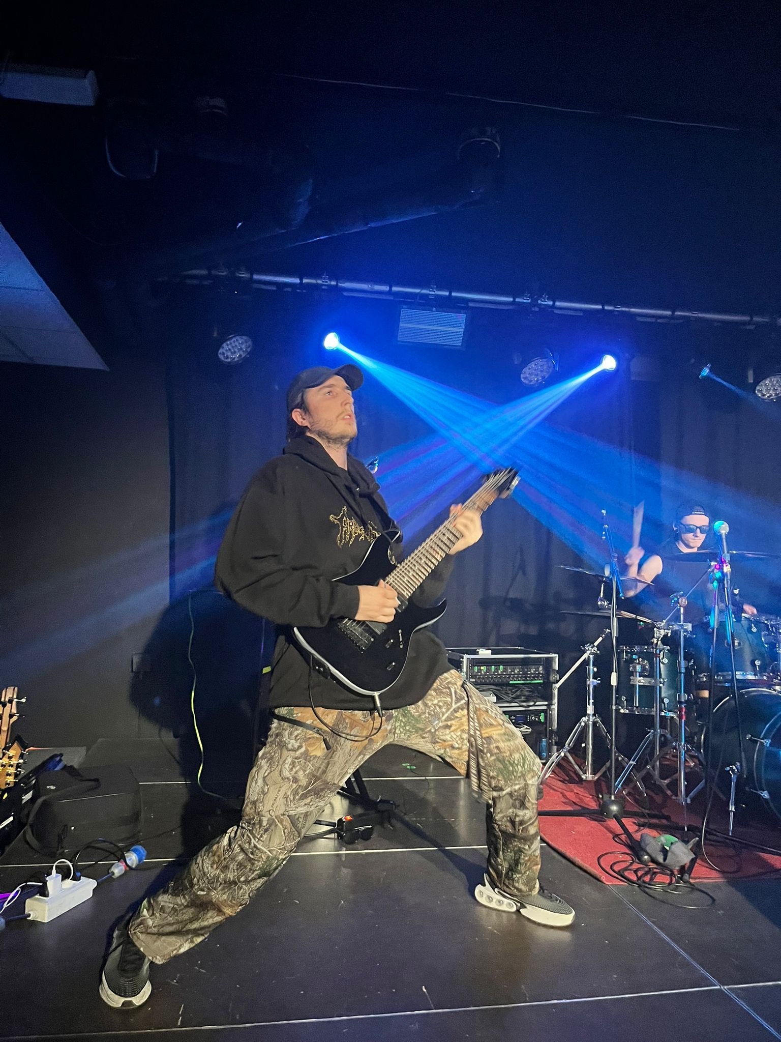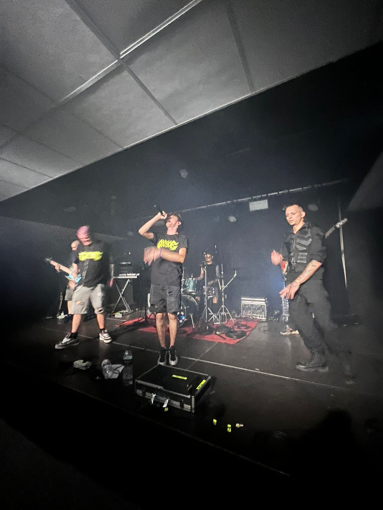 I My Supremacy si presentano con formazione a quattro, con la particolarità della chitarra a otto corde e del basso a cinque, in grado di creare imponenti muri di suono sul quale si stagliano parti pulite e in growl del cantante in maniera eterogenea. Tre gruppi su quattro sono della zona del capoluogo quindi il calore del pubblico si fa sentire e qualche pogo si avvia senza troppa difficoltà trainato dal caratteristico Deathcore “cibernetico” della band la quale utilizza con grande profusione tracce registrate che danno una sensazione di essere scaraventati in un mondo Cyber-Punk. La sensazione però è che le varie interruzioni degli strumentali tendano a creare momenti di pausa che a lungo andare rendono lo show un po’ troppo spezzettato andando a rendere un po’ “stanca” la prestazione. Non escludo però che ci possa essere bisogno di più ascolti per interiorizzare meglio la proposta comunque valida sotto il punto di vista compositivo. La prestazione rimane buona nonostante il mal di gola del frontman che ne ha inficiato le parti pulite, ma non l’entusiasmo né la carica, ben supportata anche dalla presenza scenica dei compagni di squadra. Sorridenti e soddisfatti sopra e sotto il palco.