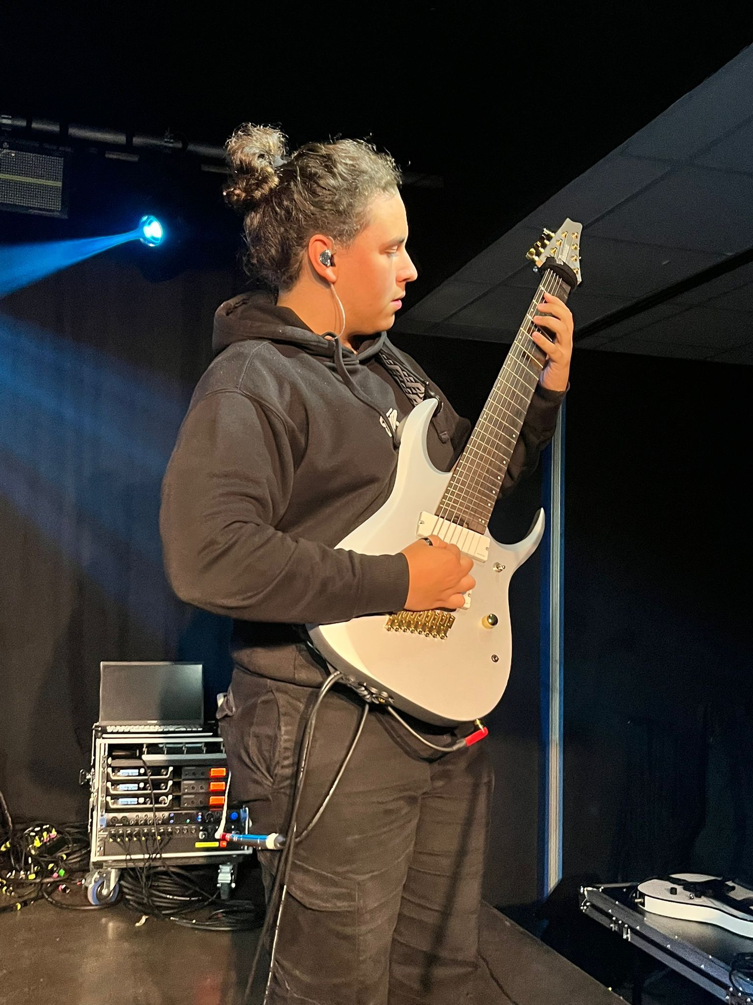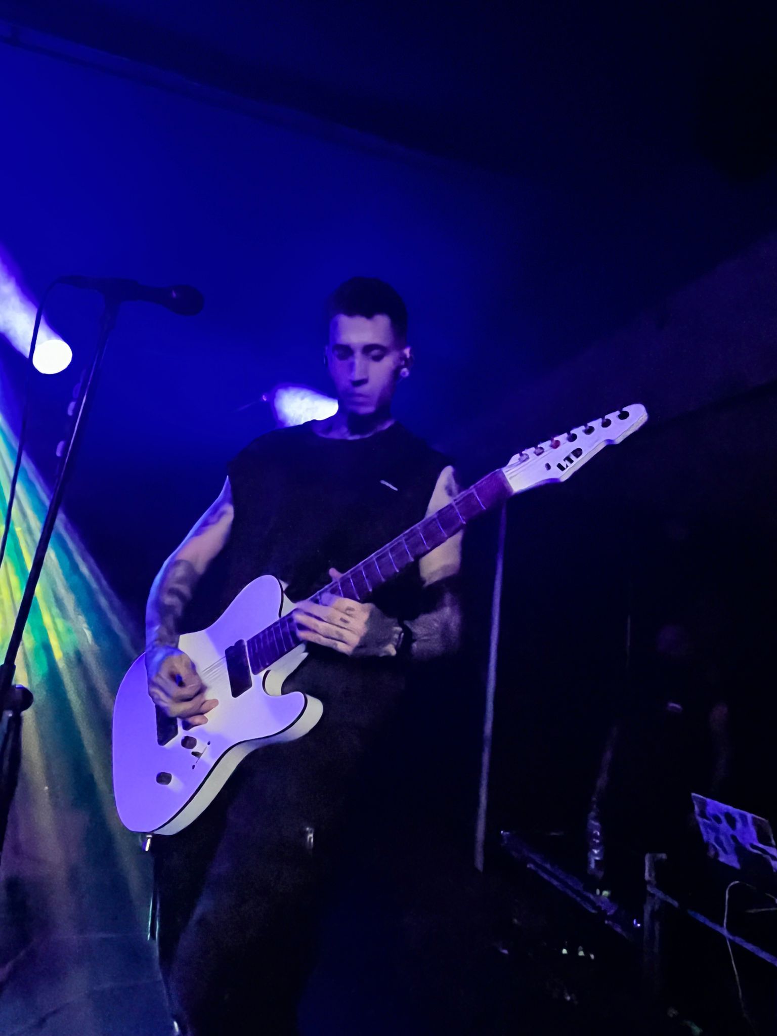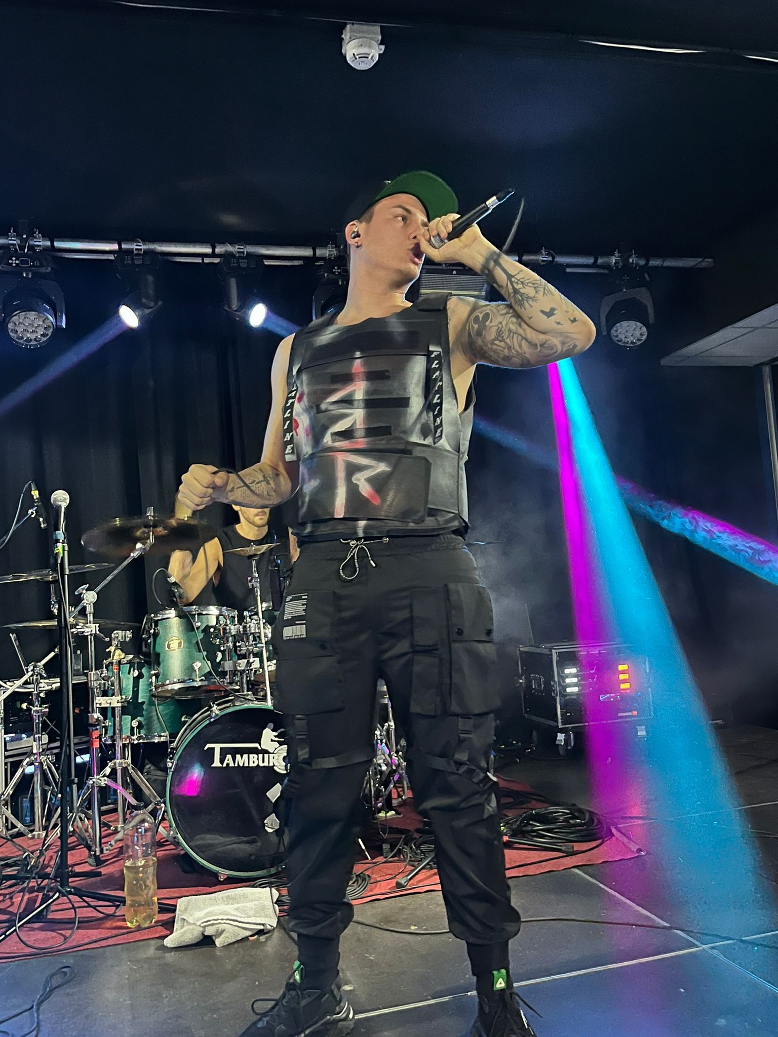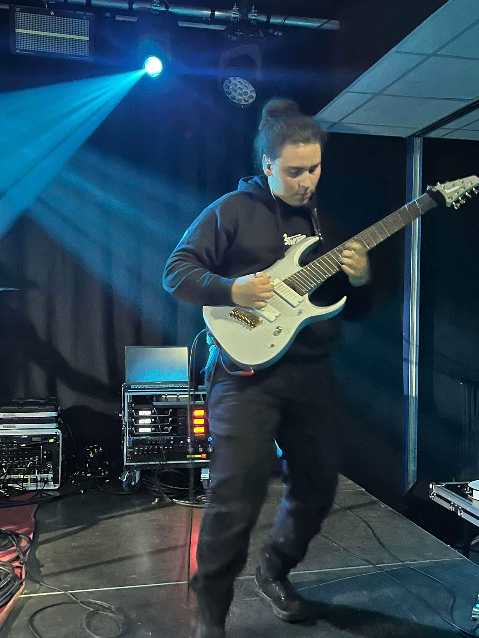 I My Supremacy si presentano con formazione a quattro, con la particolarità della chitarra a otto corde e del basso a cinque, in grado di creare imponenti muri di suono sul quale si stagliano parti pulite e in growl del cantante in maniera eterogenea. Tre gruppi su quattro sono della zona del capoluogo quindi il calore del pubblico si fa sentire e qualche pogo si avvia senza troppa difficoltà trainato dal caratteristico Deathcore “cibernetico” della band la quale utilizza con grande profusione tracce registrate che danno una sensazione di essere scaraventati in un mondo Cyber-Punk. La sensazione però è che le varie interruzioni degli strumentali tendano a creare momenti di pausa che a lungo andare rendono lo show un po’ troppo spezzettato andando a rendere un po’ “stanca” la prestazione. Non escludo però che ci possa essere bisogno di più ascolti per interiorizzare meglio la proposta comunque valida sotto il punto di vista compositivo. La prestazione rimane buona nonostante il mal di gola del frontman che ne ha inficiato le parti pulite, ma non l’entusiasmo né la carica, ben supportata anche dalla presenza scenica dei compagni di squadra. Sorridenti e soddisfatti sopra e sotto il palco.