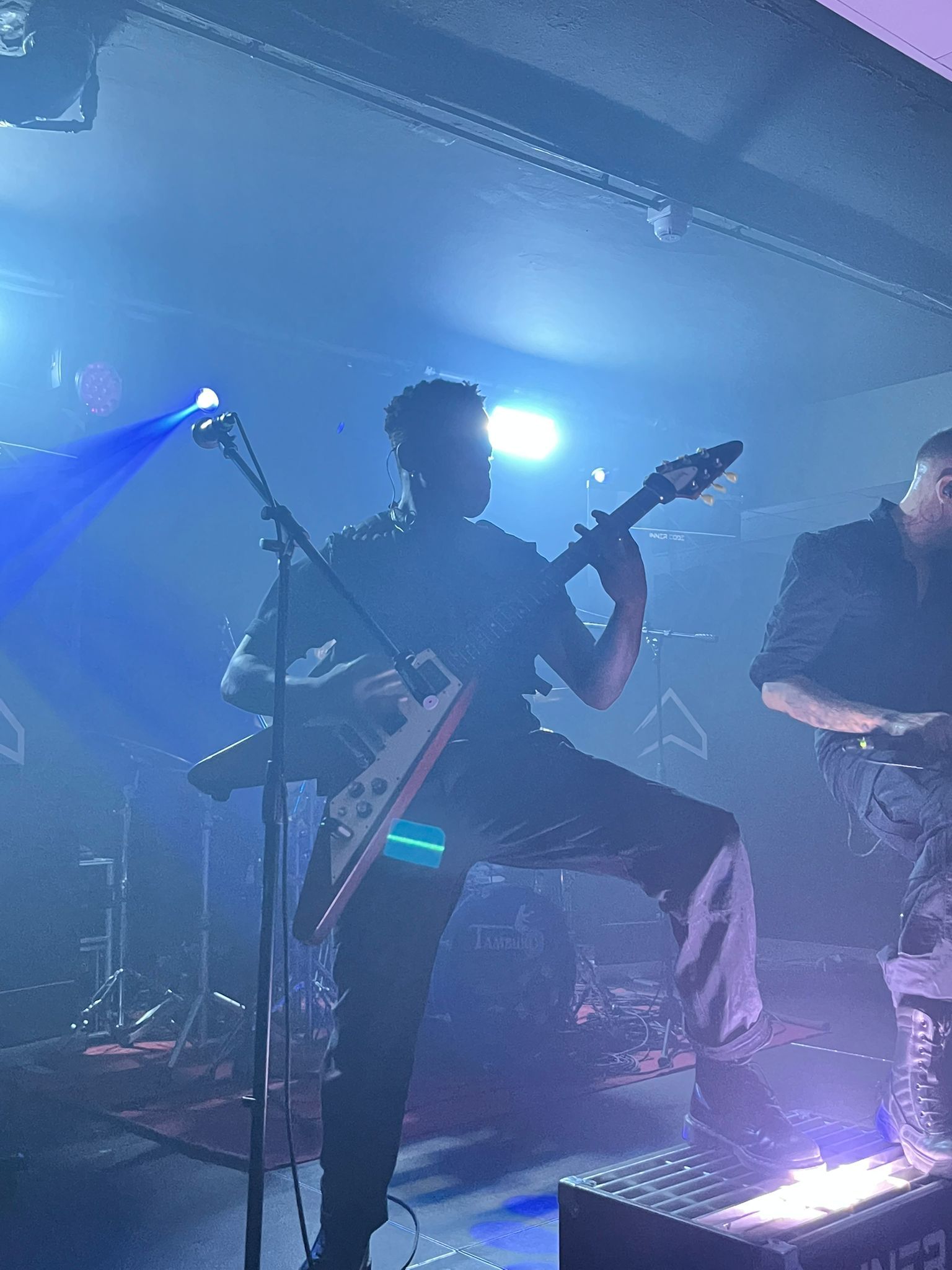 I ritmi sono serrati, la fine dei concerti deve essere tassativa alla mezzanotte e così dopo un rapidissimo cambio palco è il momento dei CROMO6, formazione attiva da tempo, ma lontana dai riflettori a lungo prima di fare il loro ritorno in occasione di una prestigiosa data in apertura ai Sign Of The Swarm tenutasi a giugno sempre qui a Torino. L’esibizione è accorciata nelle tempistiche rispetto a quella delle altre band per via di un repertorio ancora in fase di assemblaggio, ma la scarica elettrica che il sestetto è in grado di sprigionare ovvia alla grande a quanto detto. Le due voci addette al contrasto tra growl e scream creano un contraltare di grande efficacia e caratterizzano il loro Deathcore brutale e ritmato. L’ottima predisposizione allo spettacolo dal vivo si nota dalla continua interazione tra artisti e pubblico con tanto di circle pit conclusivo con al centro uno dei due chitarristi intento a gasare al massimo il cerchio di corridori. Ospite d’eccezione il cantante degli Inner Code che offre la propria ugola in occasione di un brano a fine set list.