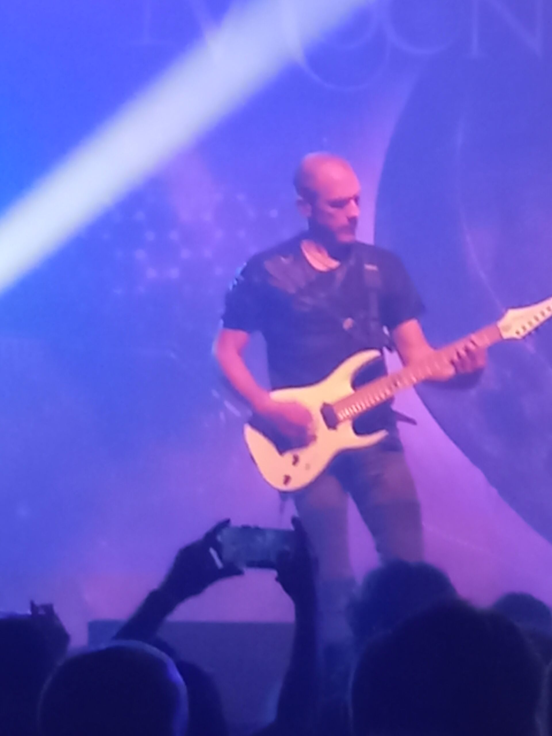 La magia e la quiete del momento vengono interrotte con la presentazione del brano successivo, “Black Diamond”. E si scatena il delirio. Matias è un maestro con la chitarra. Mostra una scioltezza e una naturalezza inaudite mentre esegue assoli di difficoltà tecnica altissima. Anche Rolf ha il suo momento di gloria, con un breve assolo che ci ricorda che il cuore pulsante degli Stratovarius non smette mai di battere. Chitarra classica, dita incrociate e sì, la fanno. “Forever”, una canzone che… no, non sto piangendo, mi è entrata della povere nell’occhio.
