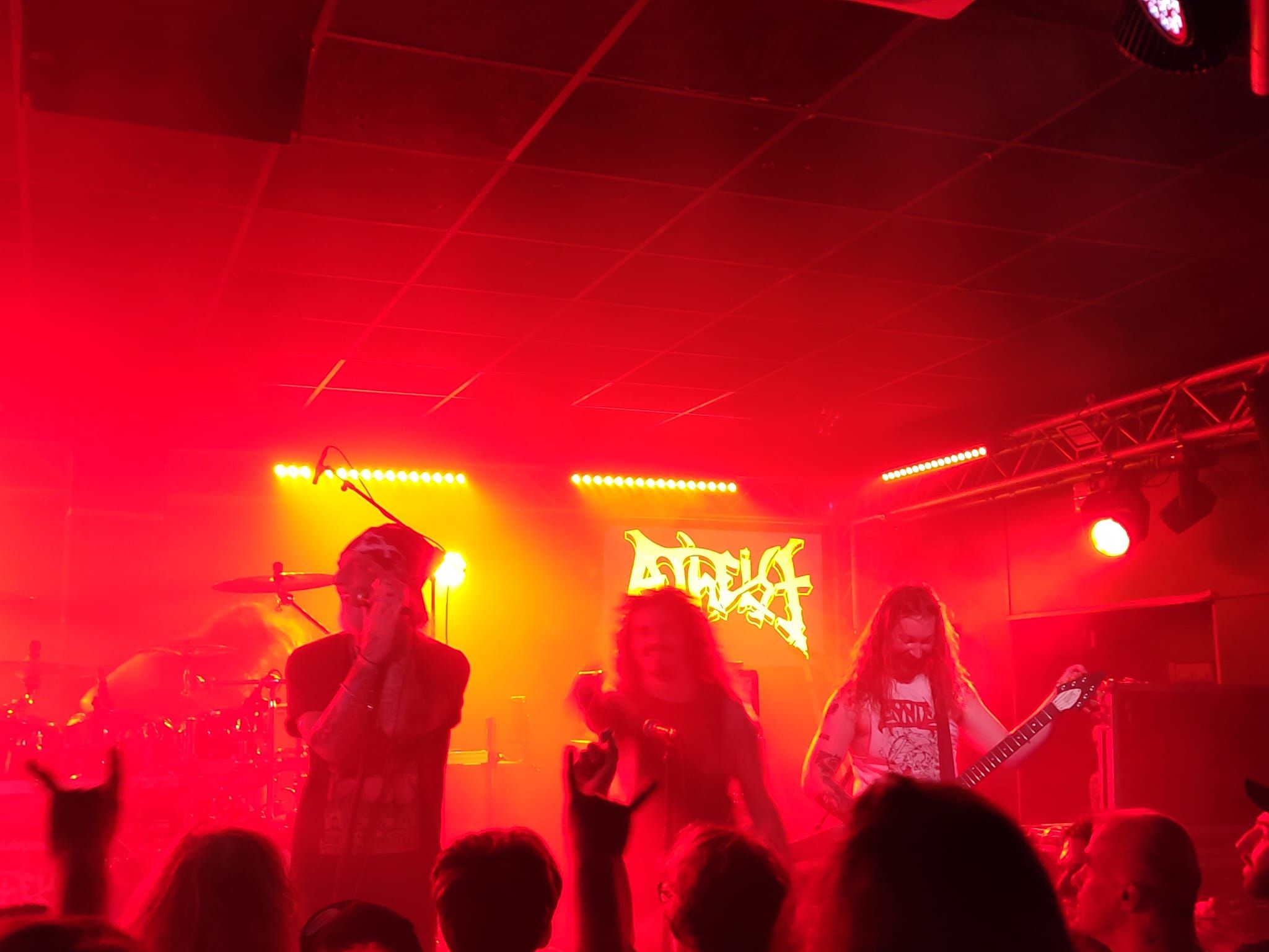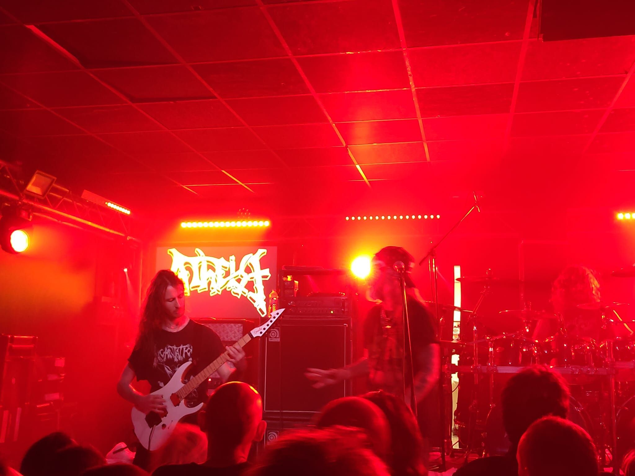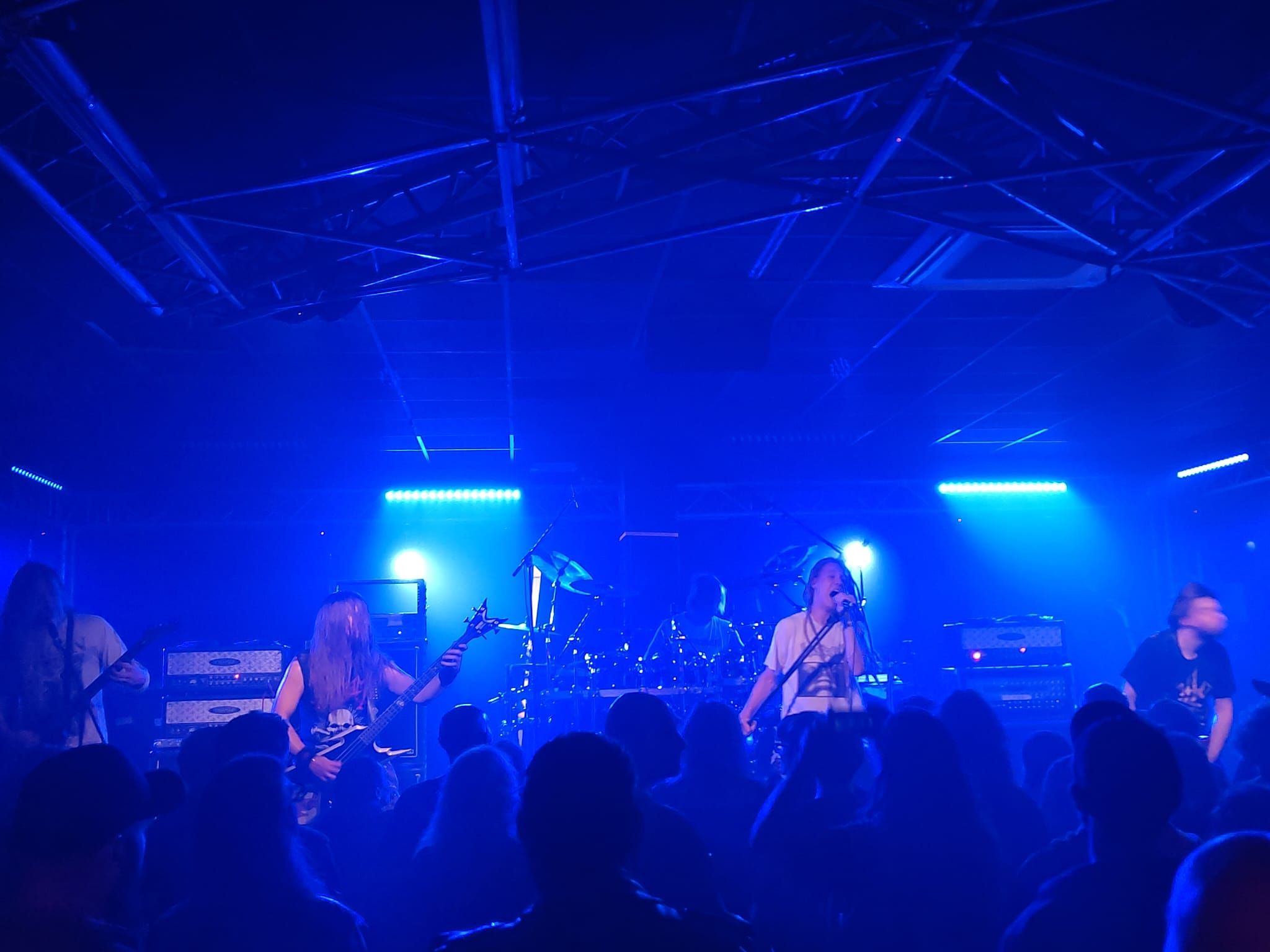 Purtroppo la partenza prima di una certa ora è difficoltosa; arriviamo al locale appena in tempo per incrociare i quattro brani conclusivi degli Intrepid, perdendo purtroppo completamente le esibizioni di Death Rattle e Gorgatron. Se i sodali puntano già per uscire con la loro birretta, una volta preso ad ascoltare il quintetto estone i piedi si fanno prima pesanti, dopodiché la testa comincia a muoversi a ritmo e si sprecano le corna al cielo all’indirizzo del gruppo. Un modo alternativo per dire che i cinque sanno il fatto loro e le composizioni scorrono che è un piacere; sul palco senza scatenarsi più di tanto, ma evidentemente a loro agio, la loro è una proposta fortemente debitrice del death metal americano, in particolare le armonizzazioni delle due chitarre non possono non ricordare i Death. Esibizione magistrale e locale che risponde in modo positivo e partecipe, avanti così!