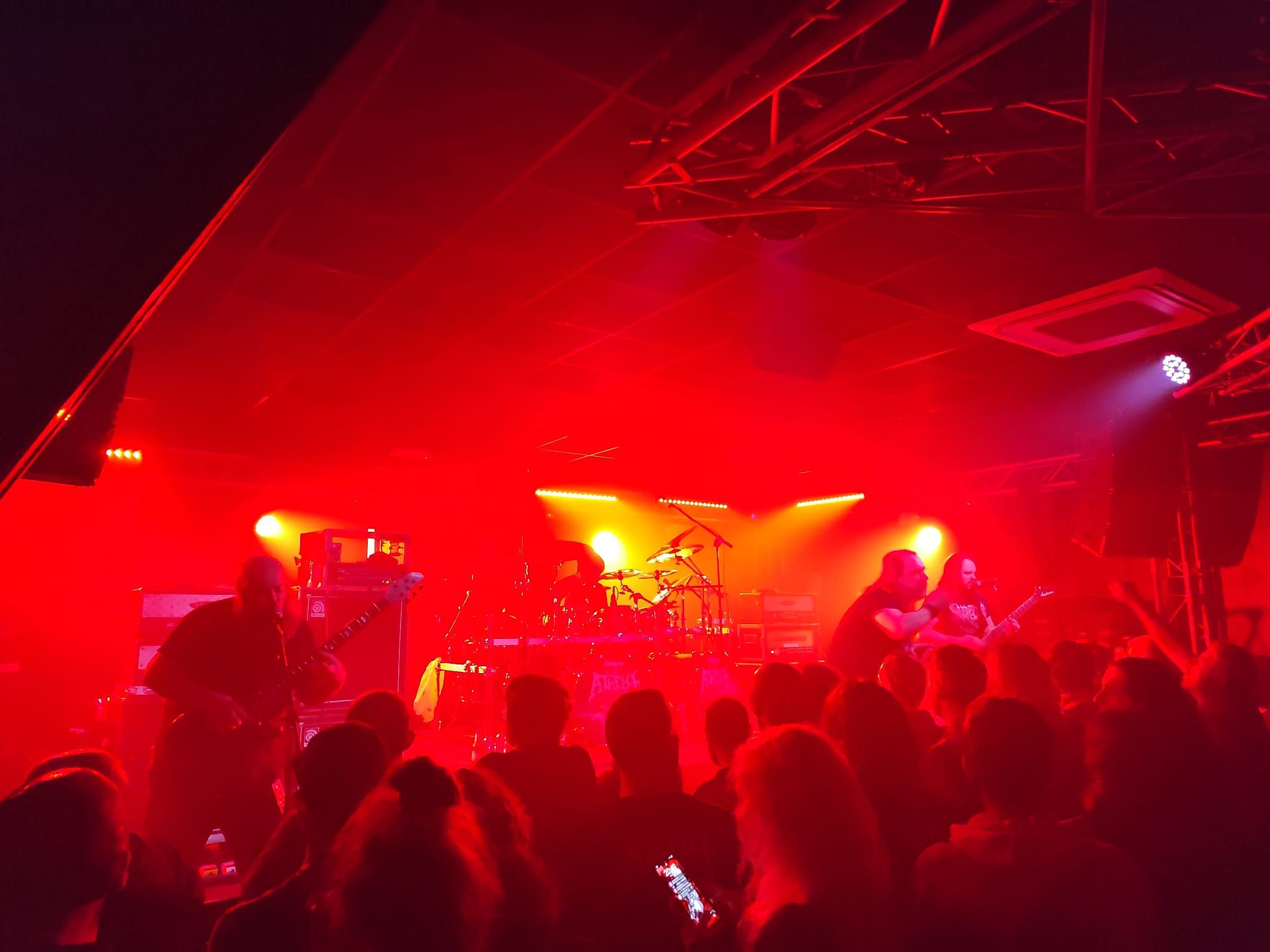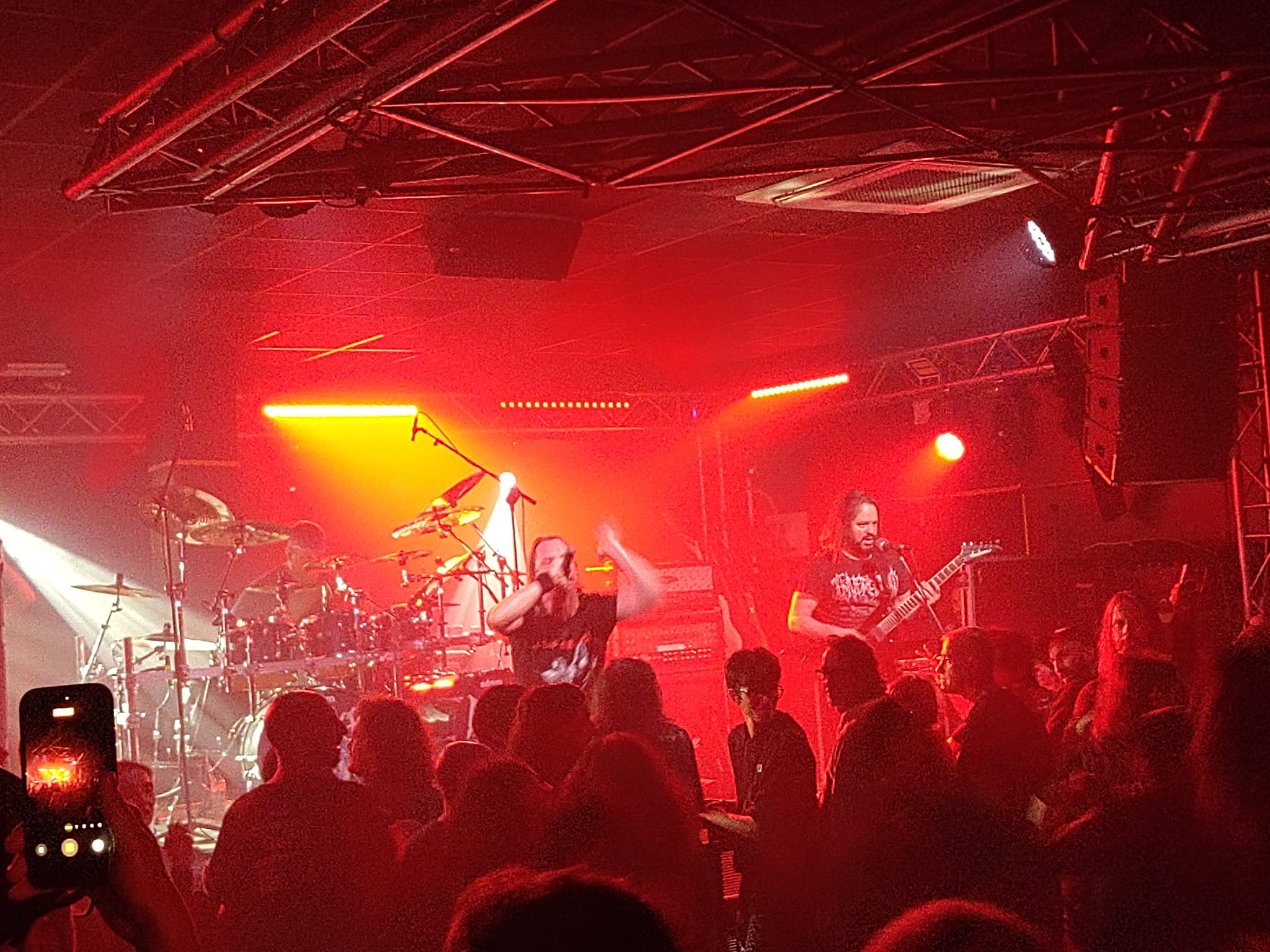 Si passa quindi ad un gruppo storico, gli statunitensi Origin; improbabile non aver mai nemmeno intravisto il nome su qualche testata/giornale specializzato, nel 2027 d’altronde festeggeranno trent’anni di attività, con il solo membro fondatore della formazione primigenia rimasto nella figura del chitarrista Paul Ryan, anche se il batterista John Longstreth ed il bassista Mike Flores non sono da meno (ingresso rispettivamente nel 1999 e nel 2002). Vero mattatore del gruppo l’elettrizzante cantante Jason Keyser che, seppur il pubblico del Legend non sia propriamente partecipe, si prodiga nel cercare di interagire, spronare, rendere partecipe, con un continuo incitamento e richiesta di movimento nella zona pit, ad essere onesti poco riuscito e poco considerato. D’altronde, quantomeno a parere di chi scrive, l’abisso tra la proposta della formazione principale della serata e quella degli Origin è lampante; il brutal death metal tecnico del quartetto dal Kansas sa essere ostico per chi non ha orecchie allenate e non mastica il genere. Ryan si lancia in continui assoli a velocità sostenuta, ma ad onor del vero, quando la velocità scompare ed è il momento di lasciare spazio al pathos, non ci siamo proprio (faccio riferimento all’unica linea melodica uscita dalla sua chitarra, davvero priva di alcun sentimento).