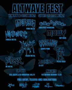 Altwave Events in collaborazione con Heavymetalwebzine.it è contenta di annunciare dopo il successo del Da Giau Metal Fest una nuova doppia data! Venerdì 10 Ottobre presso il Circolo ARCI Da Giau e Sabato 11 Ottobre al circolo ARCI Machito non mancate per il primo ALTWAVE FEST!