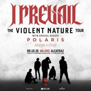 Forti della pubblicazione del nuovo album “Violent Nature”, gli I PREVAIL annunciano oggi le date del “The Violent Nature Tour”, che li vedrà in concerto anche in Italia l’anno prossimo per un unico appuntamento: lo show si terrà all’Alcatraz di Milano venerdì 9 ottobre 2026.