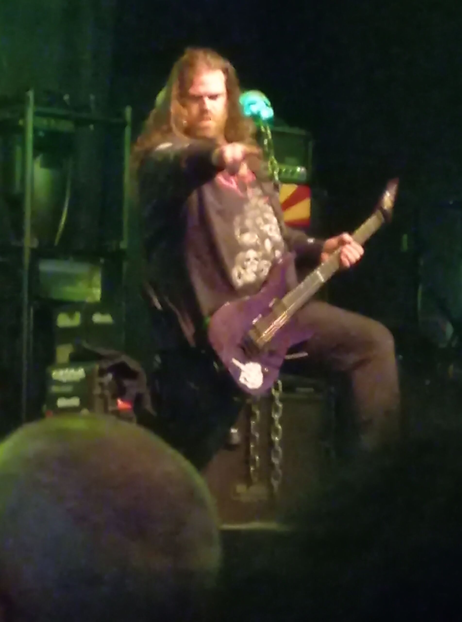 Cala il telone con la scritta “Pure Fucking Metal” per coprire il palco. Stanno lavorando per preparare la scenografia degli headliner di serata, gli Arch Enemy.